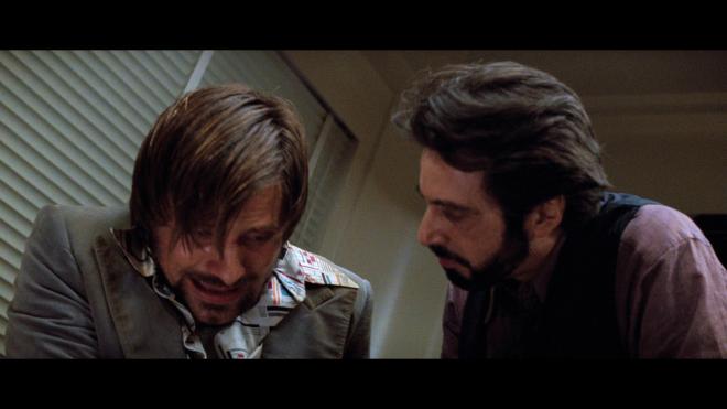 Aside from the lack of HDR10+, this transfer from Arrow is virtually neck and neck identical to the Universal disc. Which isn't a bad thing at all. The film had a fairly respectable life on disc, even the VC-1 encoded Blu-ray was actually pretty good, but this is an incredible upgrade. Details are sharp, crisp, and beautiful. Facial features, costumes, set design, hell even the cracks in the leather of a taxi cab in the third act all come in with brilliant clarity. The resurrected '70s vibe feels authentic without screaming "This is the 1970s!" Film grain is finely rendered intact for a genuine cinematic appearance. The Universal Disc offered up HDR10+ in addition to HDR10, I was never really able to appreciate that grade because my office setup is the only compatible rig I've got and it's far from reference. However, the standard HDR10 grade I can speak to and this transfer looks and feels neck and neck. Colors are bright and vibrant, with healthy skin tones - no one looks peached out or too pink. Black levels are relatively strong, almost pitch-black perfect, but some of the darkest scenes don't quote pop but they're pretty damn close. Whites are bright and crisp without blowouts. All around an excellent presentation.