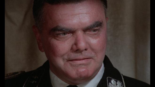 A natural grain field is present throughout, keeping the grind house aesthetic firmly in place. The sheer amount of detail within skin textures and facial features is overwhelming at times. Before the opening sex scene is over, it's clear that this is the best Ilsa has ever looked. My god, you can even see light reflecting in Dyanne’s piercing blue eyes. No DNR or smoothing present. Primaries are strong with reds bright and bold across the SS uniforms and blood effects. Detail is present within dark spaces and shadows, like the grimy quarters of the camp. The black fabric of the SS uniforms reveals textures and details as well. Image stability, depth, and contrast are all solid.