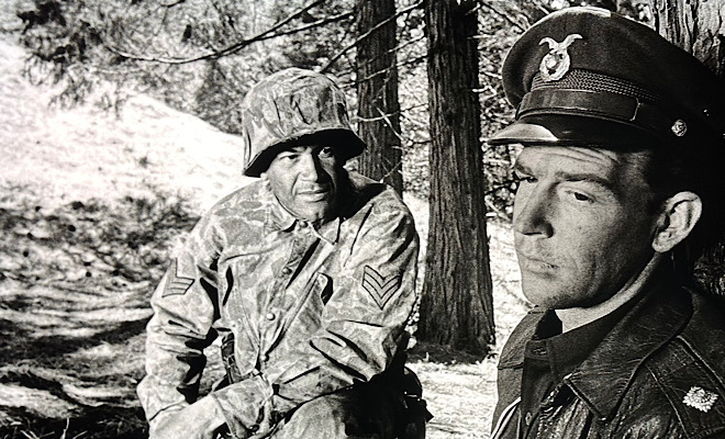 The acting is a mixed bag. Frank Silvera, who would also star in Killer's Kiss and enjoy a fruitful career, is the best of the bunch, filing a natural, no-nonsense portrayal. Kenneth Harp overplays the arrogance and cynicism of the commanding officer and Stephen Coit has some nice moments as his subordinate but it is 21-year-old Paul Mazursky who grabs the most attention in his film debut. He would achieve far more renown for writing and directing such 1970s hits as Bob & Carol & Ted & Alice, Harry and Tonto, and An Unmarried Woman. Mazursky's inexperience is all too evident when his sensitive character loses his grip on reality, but he's quite effective in quieter, more introspective scenes. In addition to playing GI protagonists, Harp and Coit also turn up as enemy villains. Initially, I had assumed Kubrick assigned them dual parts to make a point about man's duplicity and how personalities can be molded by circumstances. Later I learned their double duty was simply due to budget constraints. I guess a struggling young filmmaker's gotta do what a struggling young filmmaker's gotta do.
