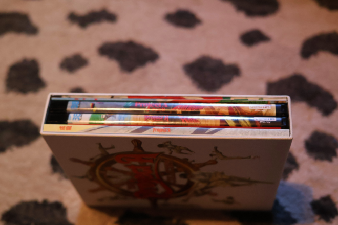 The packaging for Project A/Project A Part II is absolutely insane and the bells and whistles are seemingly never-ending, with a new surprise waiting for me at every turn. Each movie is housed in a standard case on both a 4K UHD Blu-ray disc and a standard Blu-ray. Both cases contain reversible covers featuring new artwork from “Kung Fu” Bob O’Brien and original cover artwork from the Hong Kong posters. Inside each case is a collection of lobby cards, replications from their theatrical runs.