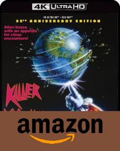 From the Chiodo Brothers, Killer Klowns From Outer Space is a farcical tribute to the sci-fi B-horror movies of the 1950s and 1960s but intentionally exaggerates the nonsense to the level of outrageous slapstick silliness. Cliché-ridden and hysterically absurd, the film comes with a very dark, twisted sense of humor that's bizarrely lighthearted and animated. Courtesy to Scream Factory, the alien creatures invade 4K Ultra HD SteelBook with an impressively shocking Dolby Vision HDR presentation that easily bests previous Blu-ray releases. Sadly, a pair of DTS-HD Master Audio soundtracks are average at best while displaying a few anomalies that ultimately make for a disappointing listen. Supplements are carried from the previous BD, but the loyal, rabid fans will nonetheless hunger to add this wildly popular cult favorite to their 4K cult library.