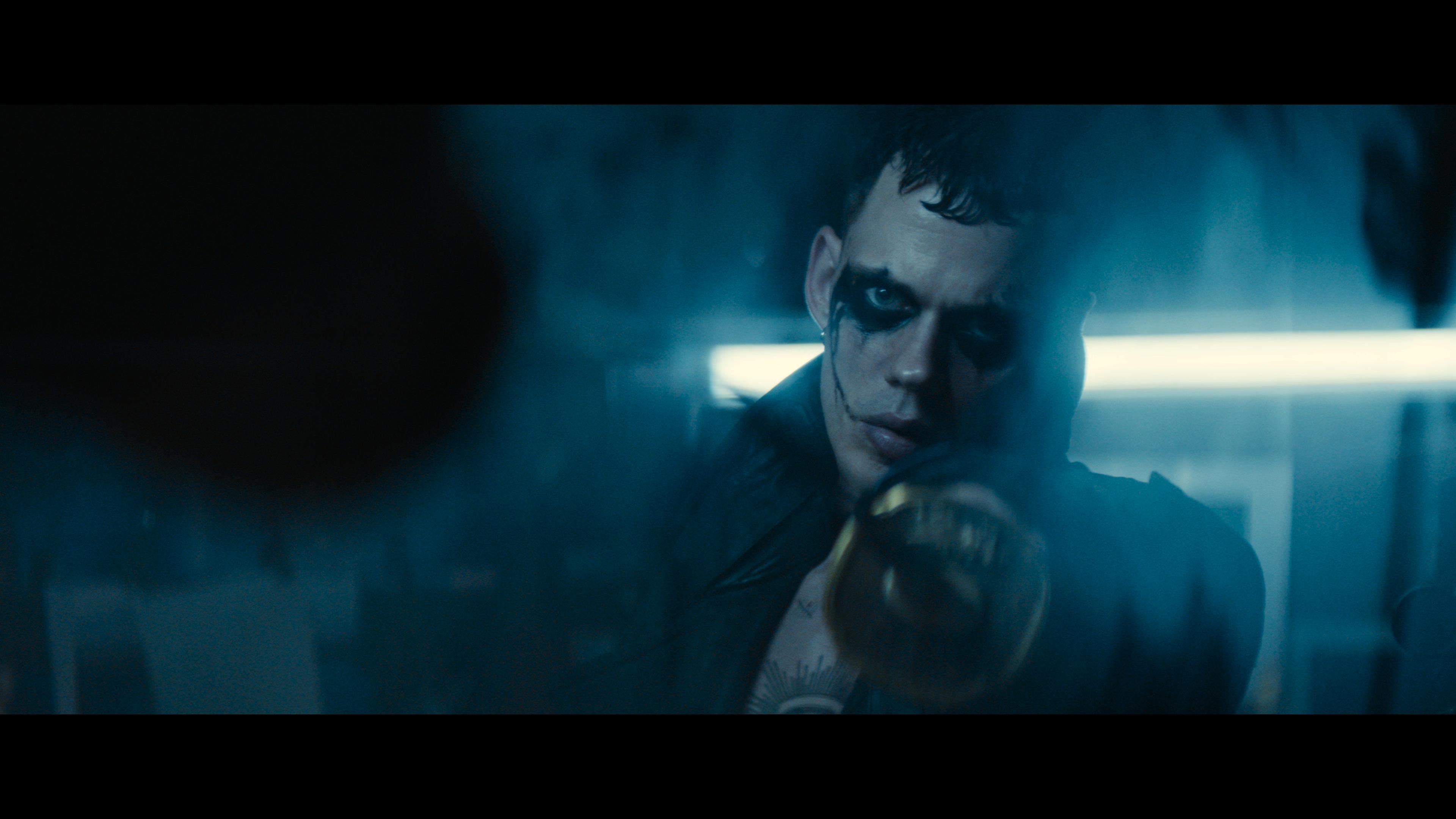 While the film itself might not be much to watch but it’s a visually well-made flick and makes for a damned impressive 2160p Dolby Vision transfer. The film’s locations are kind of all over the place from a brutalist rehab facility to a grand opera house so it never gets too stuck in one look. We have full daylight happy scenes and a slew of dark creepy locations to stress the visuals. Details for facial features, fashions, and an abundance of tattoos look sharp and clear. I was really impressed by the gore effects of Eric healing after each wound, that was at least a new interesting franchise wrinkle. The Dolby Vision grade offers a full range of enhancements from the nice bright whites to the deep dark blacks. Colors are well saturated giving plenty of attention to key primaries while making sure skin tones are healthy and human. Top to bottom this is a great-looking disc and the film itself is visually interesting, just wish the story worked better we could enjoy what we were seeing a little more.