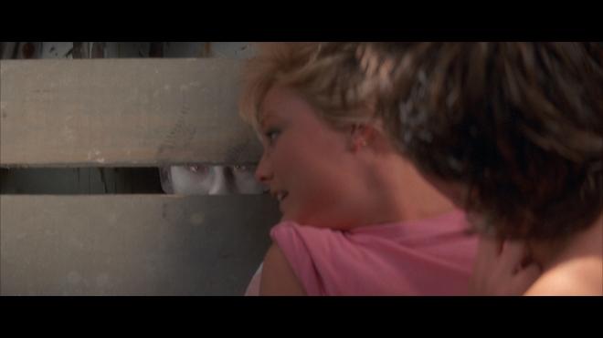 The cult black comedy slasher pranks Ultra HD with an impressive, highly satisfying HEVC H.265 encode that reportedly comes from a fresh remaster of the original 35mm camera negatives. The native 4K transfer showcases excellent sharp details throughout, exposing every little nook and cranny of the house and the surrounding foliage. In Dolby Vision HDR, the 2.35:1 image enjoys an outstanding contrast and brightness balance with clean, spot-on whites and crisp, tight specular highlights. Black levels are inky and true throughout with strong shadow delineation during the darkest, poorly-lighted moments, providing the image with appreciable depth and dimensionality. The palette is also more vibrant and varied than its HD SDR counterpart with the primaries looking particularly richer and bolder, and facial complexions appear healthy and revealing with accurate peachy-rose tones in the entire cast. (Dolby Vision HDR Video Rating: 92/100)