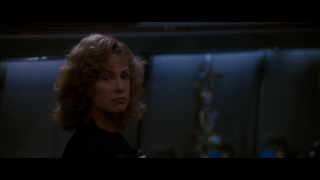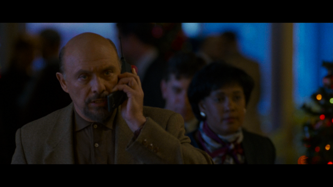 Equipped with a refined yet visible layer of natural grain throughout, the native 4K transfer looks very film-like and cinematic — that uniquely 90s polished but still somewhat gritty appeal that was very popular with disaster flicks. Fine lines and objects are incredibly sharp and detailed, exposing all the small intricacies and components of the airplane. At the same time, the lettering of signs and monitors is legible from a distance. The Dolby Vision HDR presentation also arrives with a spot-on contrast and brightness balance, showering the action in brilliant, spotless whites and crisp, radiant specular highlights, which give many of the Christmas lights and decorations a realistic glossy sheen. Speaking of which, Lloyd Ahern II's orange-teal cinematography really pops with energy and surprisingly good cheer as the holiday-themed sets are bathed in sumptuous, richly saturated colors from start to finish, and facial complexions appear accurate and healthy with lifelike textures in the cast. Most impressive are the inky-rich, true black levels lavishing every scene in silky, velvety shadows that don't ruin the finer details, providing the 2.35:1 image with excellent dimensionality and cinematic appeal. (Dolby Vision HDR Video Rating: 92/100)