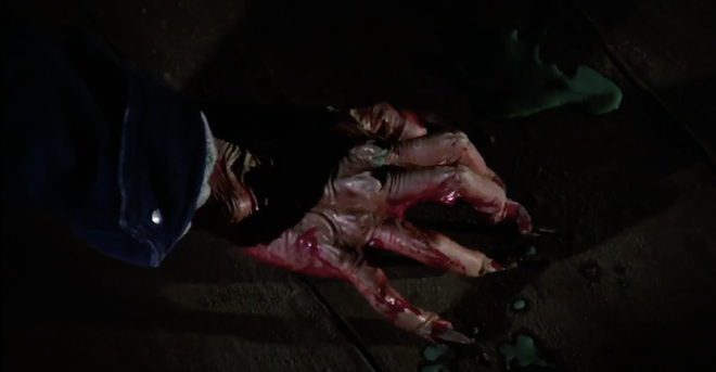 Revisiting this childhood favorite for the umpteenth time, I'm amazed the cult Italian horror classic still holds up surprisingly well, overwhelming its audience with a heavy-metal madness that's as comically contagious as it is sensationally over-the-top. Admittedly, the tense, action-packed moments can also seem somewhat corny and screwball, especially when one character rides a dirt bike through the aisles of a theatre while wielding a samurai sword, but they nonetheless remain visually exciting to behold. Meanwhile, Gianlorenzo Battaglia's cinematography works in surprisingly perfect harmony, generating a bonkers movie-going experience that electrifies audiences into cheering the gruesome mayhem. To be clear, I'm referring to the humans and their fight for survival, not the monstrous creatures with glowing eyes, torn fingernails, and sharp, mangled teeth. They're ugly, horrifying ghouls! When charging into battle, I have my "ghetto blaster" and a mix tape at the ready.