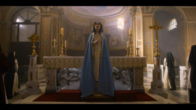 As for audio, we’re treated to a subdued, but creepy and effective DTS-HD MA 5.1 track. Given the convent location, the biggest and loudest sounds are reserved for the bigger action and scare sequences. Sounds of our nuns singing or the dining scene after Cecilia takes her vows offer an effective spread of audio effects into the sides and surround channels. Dialog is clean and clear throughout without issue. Half the cast speaks Italian so there are automatic English subtitles for those moments. The score from Will Bates is a great accompaniment to the piece offering plenty of creepy mood enhancements for the feature. All around a clean and immersive mix.
