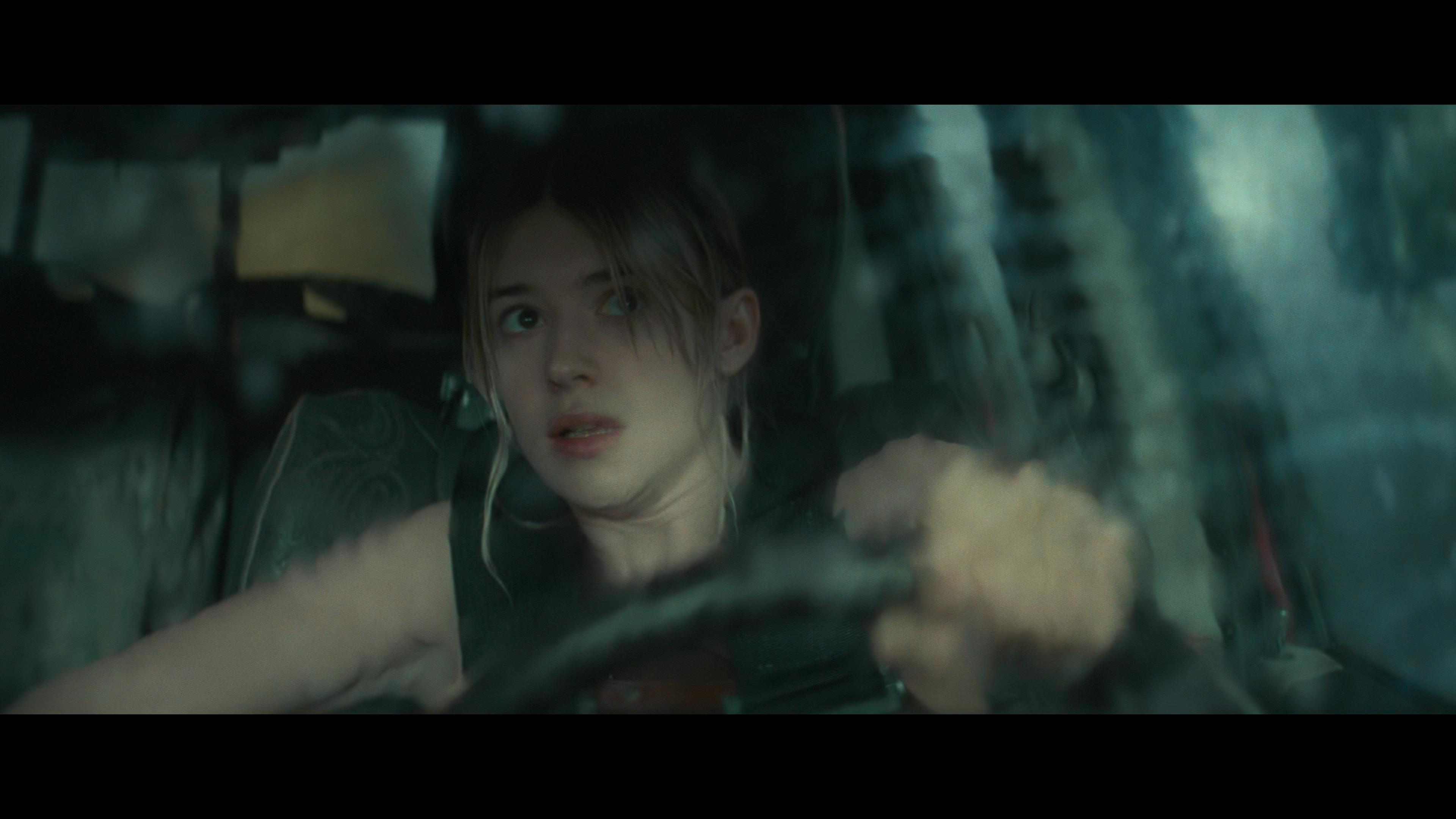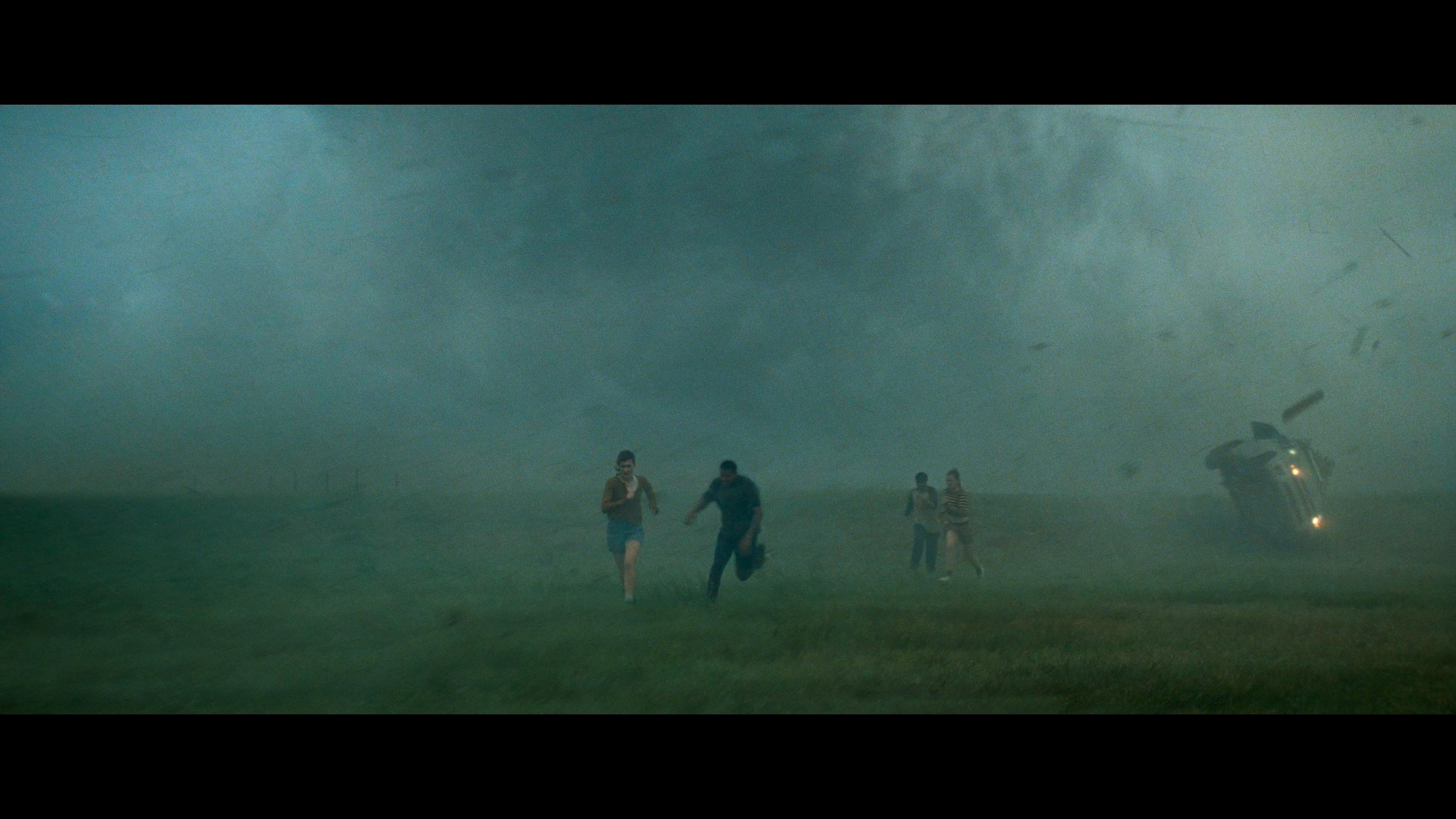 Smashing onto 4K disc, Twisters devours 2160p with an excellent Dolby Vision transfer. From frame one all the way through to the end, this is a crisp, clean, detailed image. Shot on 35mm and finished with a 4K Digital Intermediate, the image maintains a film-like appearance with a naturally cinematic grain structure. Fine lines, facial features, and production design details are razor-sharp. I was really impressed with how well the CGI effects appear here. Time and technology have worked in this sequel’s favor for creating some big-scale tornado destruction. A lot of effort was used to combine practical effects with digital counterparts so a lot of the time the big wow moments have true weight to them. A few pieces here and there can look a tad cartoonish - Powell running from the disabled tram car always looked janky and still does on disc. The rest of the time the film looks great. Colors are right where they need to be, big bold with great saturation. Thanks to Dolby Vision those reds, blues, and yellows really pop nicely. Whites are well-balanced against the dark ominous shadows. Again that rodeo sequence is a highlight moment that hits all those marks. All around a damn near-perfect transfer.