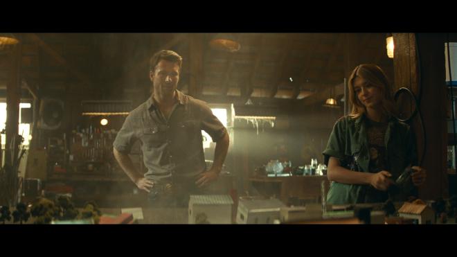 In our sort-of pseudo-sequel, we have intrepid would-be tornado-tamer Kate (Daisy Edgar-Jones) living in New York. Years earlier she was part of a team of chasers with the dream of being able to stop a tornado, but tragedy destroyed their group. Now fellow survivor Javi (Anthony Ramos) turns up with new tech and an opportunity for redemption if Kate comes back to Oklahoma. But the chasing game has changed. On the scene are any number of amateur storm chasers including the YouTube famous Tornado Wrangler Tyler Owens (Glen Powell) ready to chase down the biggest twisters.