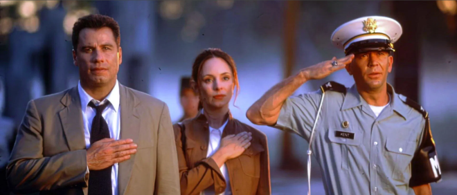 From the start, Simon West's The General's Daughter promises to be a taut mystery thriller, placing all its bets on a single premise for a compelling psychological study of the military and its darker underbelly. But this is ultimately ruined by its treatment of that concept. All the ingredients for a gripping thriller are here as John Travolta's CID special agent Paul Brenner investigates the staged assault and murder of Captain Elisabeth Campbell (Leslie Stefanson), the daughter of a high-ranking general of a Georgia army base.