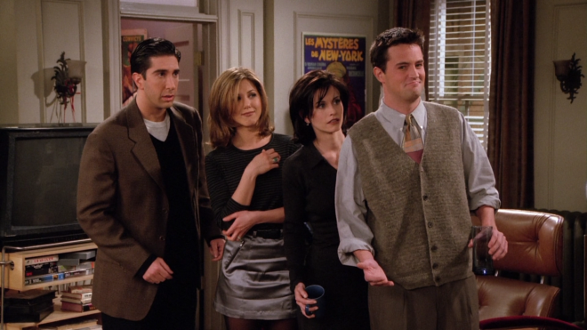 In the years since it ended in 2004, I've revisited the series from time to time, from start to finish, and flashbacks to those days with my own friends' group are permanently fixed. Many of us were also big fans of romantic comedies, so the relationship between Jennifer Aniston's Rachel and David Schwimmer's Ross was a huge selling point during the first season. I still remember how giddily excited we were when the season ended on Matt LeBlanc's Joey and Matthew Perry's Chandler letting slip that Ross was crushing on Rachel, but then, we returned in the second season to heartbreak, feeling for Rachel, when Ross came home from a dig with a girlfriend. In every episode from there, we waited with bated breath until Ross found out about Rachel, quickly establishing their silly on-and-off again relationship, teasing us with the whole "will they or won't they" storyline, which frankly is now what has made this show infamous.