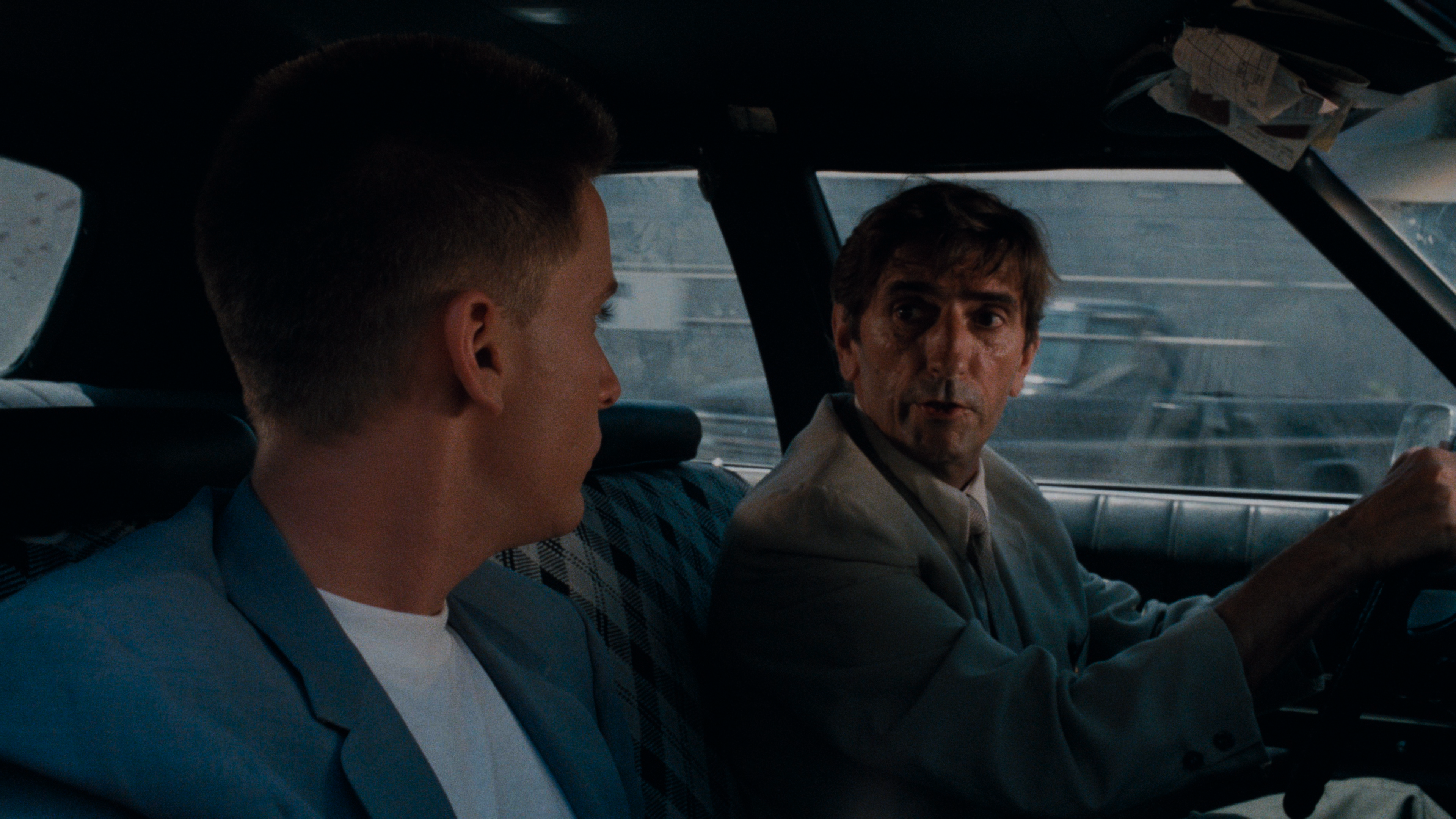 The Dolby Vision HDR presentation boasts a spot-on contrast and brightness balance showering the action in clean, crisp whites and inky rich blacks, and the nighttime sequences come with dark, velvety shadows and outstanding delineation within the darkest corners of the frame. Specular highlights supply a radiant, realistic glean along the various vehicles and a blooming glow to light sources without washing over the finer details. The rough, gritty and yellow grimy appeal of Robby Müller's photography is more prominent and noticeable — accurate to the filmmaker's aesthetic intentions — but also enjoys a generous boost in the colors, flaunting deeper, more sumptuous primaries, especially the reds and greens, while the softer pastel hues also look fuller and more animated. Facial complexions appear more accurately rendered with a peachy-rose, sometimes sunburnt tone in the cast and revealing, lifelike textures in the faces.
