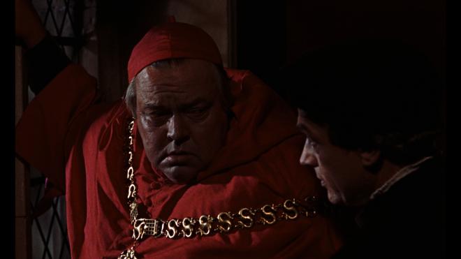 Ted Moore’s Oscar-winning cinematography is brilliantly brought to life on disc with a lovely new 2160p 1.66:1 Dolby Vision transfer. Capturing all of the incredible production design work and amazingly colorful costumes, the film is gifted with a genuinely excellent transfer. One of the things I think I love so much about this film is how bright and colorful the film is against the rather bleak tones and themes. All of the dark betrayal and political machinations aren’t confined to the shadows but done in open sunlight. Robert Shaw and Paul Scofield's meeting in the garden is a highlight moment in that respect. The trial of More is also another great visual highlight as things progress the shadows encroach into the scenes while More sits in his humble adornments and his accusers practically sparkle with a full range of colors.