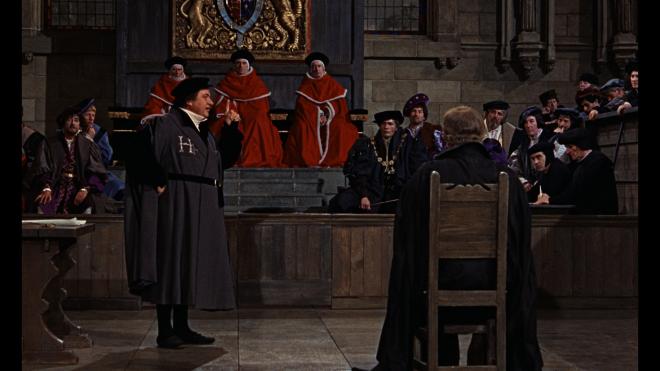 On 4K, A Man for All Seasons enjoys three different audio options, Dolby Atmos, DTS-HD MA 5.1, and DTS-HD MA 2.0 mono. Listening through the tracks, I’ll give plenty of praise to the Atmos mix as it does find some unique usages for the format. The 5.1 track and the 2.0 Mono track sound to me about the same as the Twilight Time offerings. Doing some quick disc flippies, I didn’t notice anything that stood out to tell me they were distinctly different - more on that in a second. To step back to the Atmos mix, I felt it was most effective for the trial sequence with More surrounded by the jury, his accusers, and the presiding Cardinals. There was plenty of space through the channels and the shifting shuffle of fabrics to give you this tight claustrophobic feeling as these scenes moved along. With that, this is another case where I don’t really feel like Atmos added anything to the experience. Much like how I felt about the Atmos for Tootsie, this film doesn’t need that mix to feel “complete.” The 5.1 track was adequate in that realm of surround sound but again I’m more pleased with the 2.0 mono. It’s such a conversational film that there’s not a lot of huge BIG activity to warrant that spread. I also appreciated that Georges Delerue’s should-have-won-an-Oscar score sounds more present and impactful in the Mono mix - those opening credits really are that much more powerful. So again, like Tootsie, I’ll give credit where it's due, it’s a great Atmos track and I appreciate Sony giving fans options for their various setups, but I’ll be sticking with the 2.0 mono from here on out.