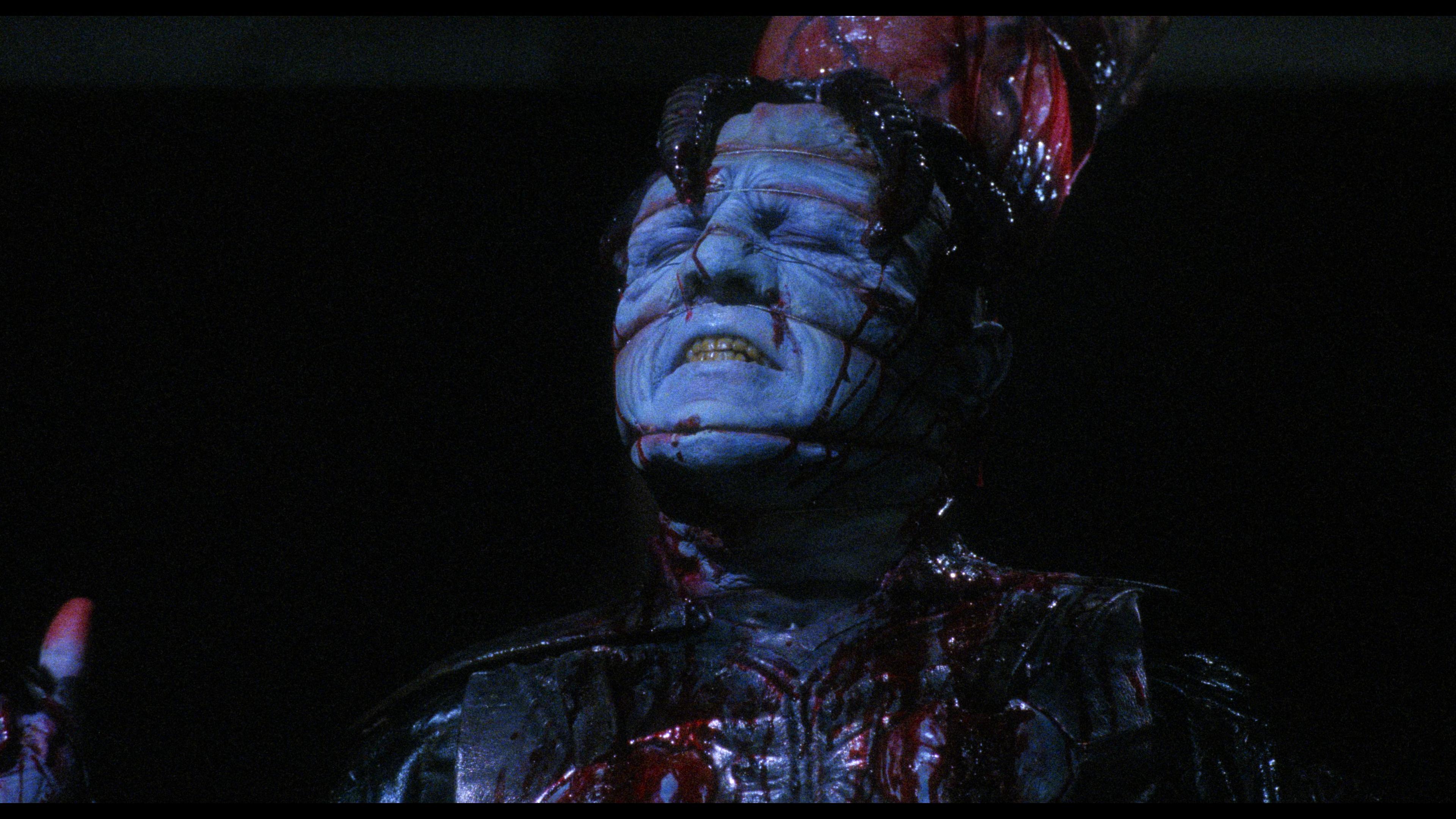Likewise, Hellbound: Hellraiser II tracks much the same as the first film. When we get to the depths of the hospital, it’s another dank creepy location with limited light sources. The main hospital and daylight scenes are brighter and more cheerful. The Dolby Vision grading does a terrific job balancing these two extremes. Colors are just as healthy and bloody as before. Details are impressively sharp, enough so you can clearly see the differences in the Cenobite makeup from the first film to this sequel. The optical effects do still stand out a bit, some don’t quite make the leap. The stop-motion animated tendrils for Channard certainly stand out but they’re just as terrifying as ever. Again like the first, the film grain is still very pronounced but it still feels natural to this one. 4.5/5