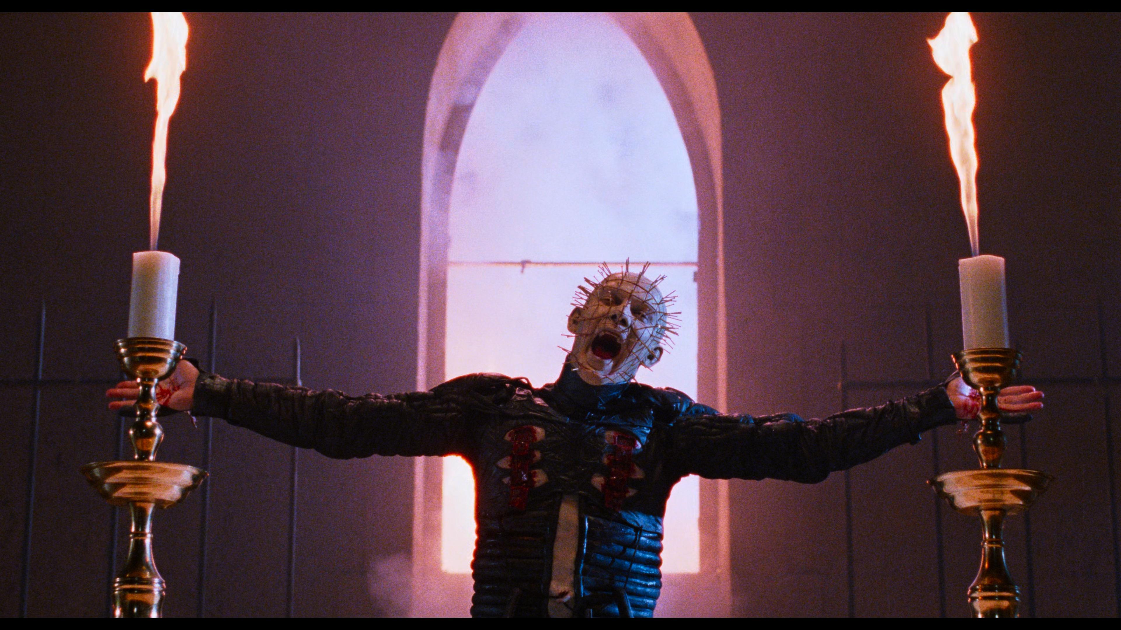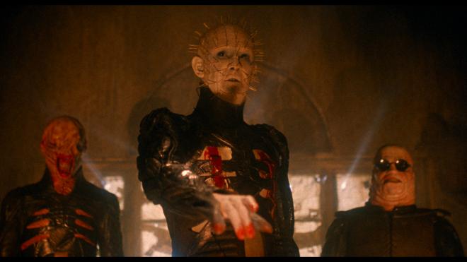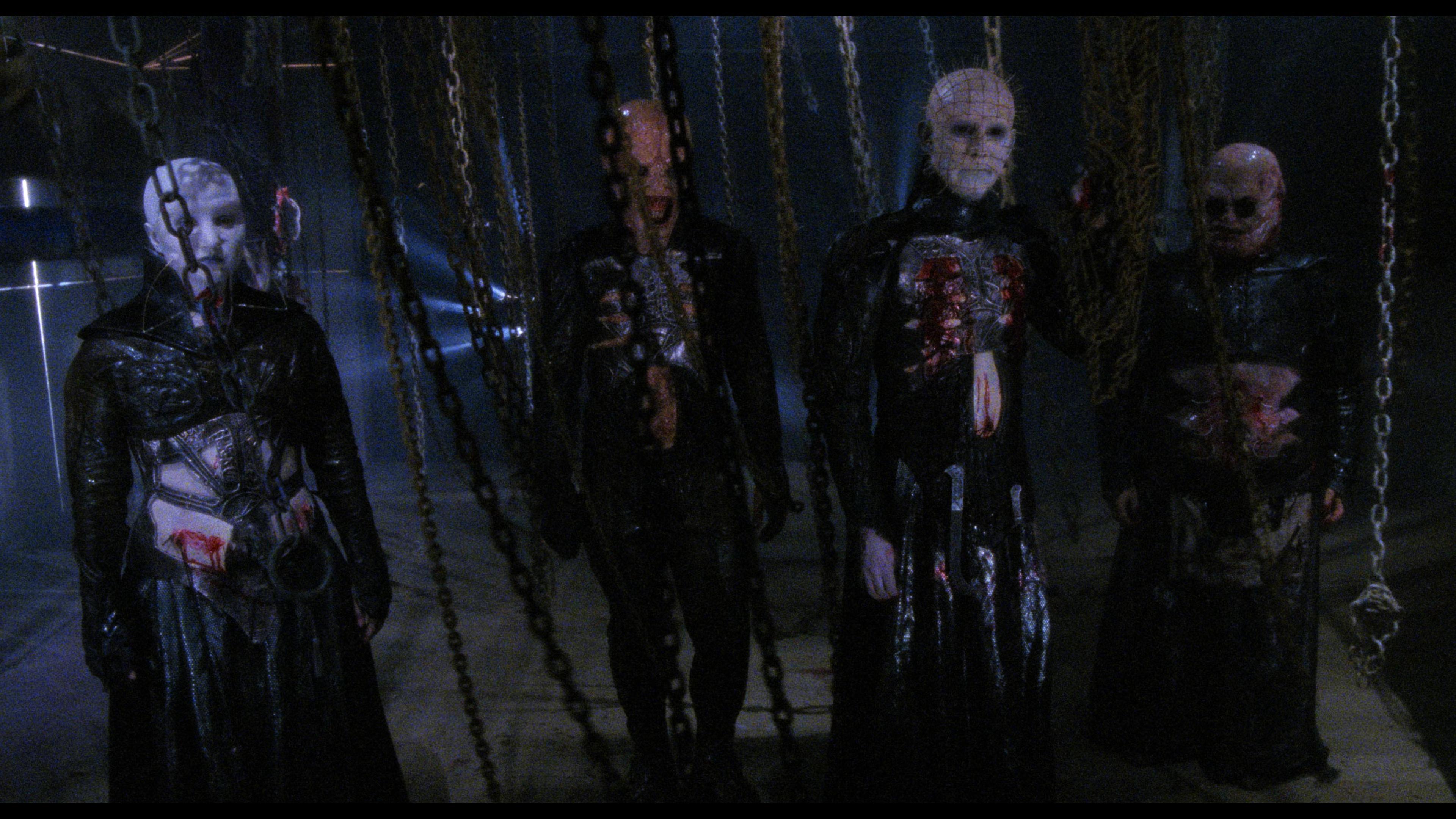 Hellraiser III: Hell On Earth earns a very welcome 4K upgrade. While the Scarlet Box Blu-ray was very good, it was also met with issues of framing. Namely the framing was opened too wide and to the right leaving it unscented and exposing a number of effects issues like wires and set extensions that shouldn’t have been seen. Thankfully with this new transfer, that framing issue has been fixed, so when Pinhead holds his black mass at the church, he’s properly centered. Generally, this one looks quite good, but this is when the franchise started to deviate from gritty underground horror to big studio slick polish and the differences in the lighting schemes are notable. Overall details are quite excellent and we can appreciate all of the new Cenobites in all their CD-throwing glory. Dolby Vision again offers the right kind of highlights and accents for all of the horrors. The extended cut makes the upgrade to 4K, but like the past Blu-ray, those extended scenes are still SD inserts so set your expectations ahead of time. 4/5