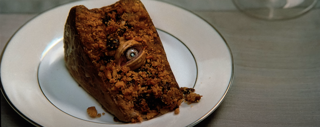 The detail is crisp and vivid showcasing a ton of wonderful details in the actors' faces and costumes. Closeups reveal amazing textures in the latex suits and masks, along with individual hairs on the goat and faces. Beads of sweat and blood also look wonderful. The bug vomit sequence is exquisite and the gooey entrails are beyond satisfactory. The CGI effects can look a little iffy in this new 4K image since its picture is o much better than the 2009 visual effects but that shouldn't hinder the score. There are no issues to speak of here, making this video the best it has looked since its theatrical release.