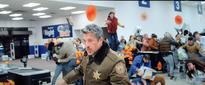 Roth knows the horror genre inside and out. With his simple, laid-back style of terror in Cabin Fever and Hostel that has transformed into more gore with Green Inferno and everything else in between- Roth feels at home inside this fan-favorite world. Now it's his turn to show his slasher chops while showcasing those darkly funny societal moments that everyone is guilty of during Thanksgiving. When this holiday starts its celebration every year, turkey and dressing are not at the top of everyone's mind. It's the shopping and waiting early in lines to get a chance to purchase that item at a steep discount. This element starts Thanksgiving with a town full of people waiting for the local big superstore to open on Black Friday where a mob of people storm the store before it opens, resulting in a riot and people being trampled to death. While it's funny to watch and horrifying at the same time, these things have happened more than once in real life.
