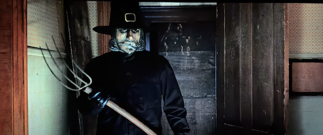 Holiday horror films are such a delight. These films get to play at least once a year when someone's favorite holiday comes around whether it be Halloween, Christmas, Valentine's Day, or in this case Turkey Day with a new film titled Thanksgiving from filmmaker Eli Roth. Serving as the third movie to make it to feature film land from Tarantino and Rodriguez's Grindhouse double feature, this faux trailer has now received the big-budget treatment with a new slasher entering the horror landscape. What looks to be a run-of-the-mill slasher flick turns into a wonderfully, funny, suspenseful fight-fest that goes all the way with its absurdity and awareness that serves up a great recipe for a Thanksgiving meal of blood, guts, pilgrims, and axes.