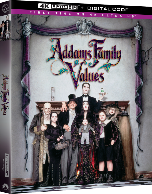 They’re creepy. Kooky. Mysterious. Spooky. You can say they’re all together "ooky." But they make one hell of a sequel for Barry Sonnenfeld’s Addams Family Values! In this second adventure, America’s favorite family has a darker razor-sharp sense of humor with a keen eye for satire. This sequel finally comes to 4K UHD boasting a much-improved Dolby Vision-enhanced transfer, great audio, and a couple of nice new extras including a great commentary track. Like the first film on 4K - Highly Recommended