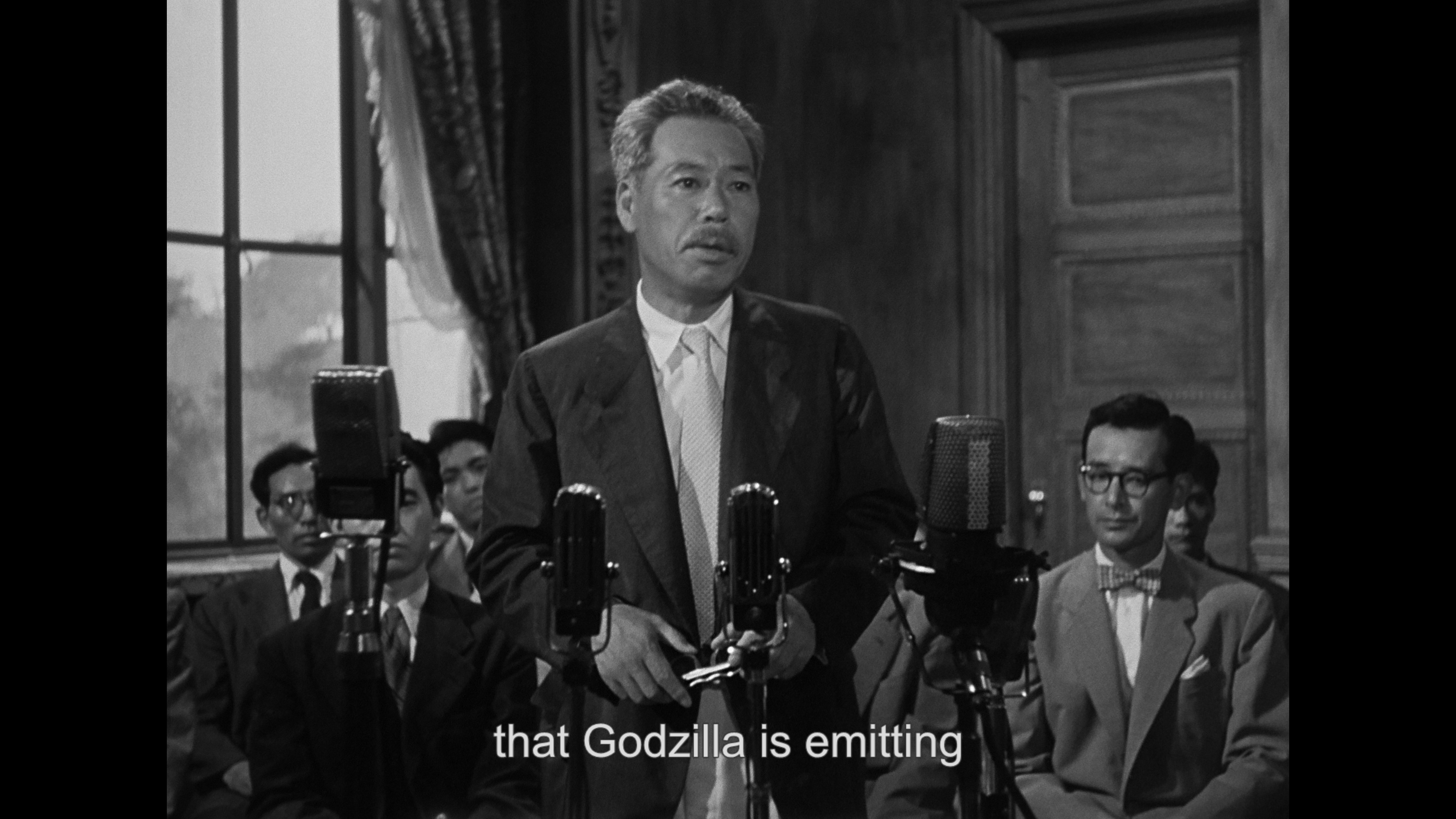 Godzilla comes to home theaters with what appears to be the same Japanese uncompressed PCM mono soundtrack as its HD SDR counterpart. Or at the least, I didn't detect any notable differences, which may have more to do with the limitations of the original sound design than the codec. Imaging is fairly limited without much range in the higher frequencies, exhibiting a bit of crackling noise during the monster's roars. In fact, the same bit of noise can also be heard in Akira Ifukube's iconic musical score. On the plus side, the lossless mix displays strong clarity in the background activity, and the low-end provides some appreciable weight, giving the approaching stomps a sense of presence and magnitude. All the while, vocals are always distinct and well-prioritized, making for a good audio presentation but is also somewhat wanting. (Audio Rating: 72/100)