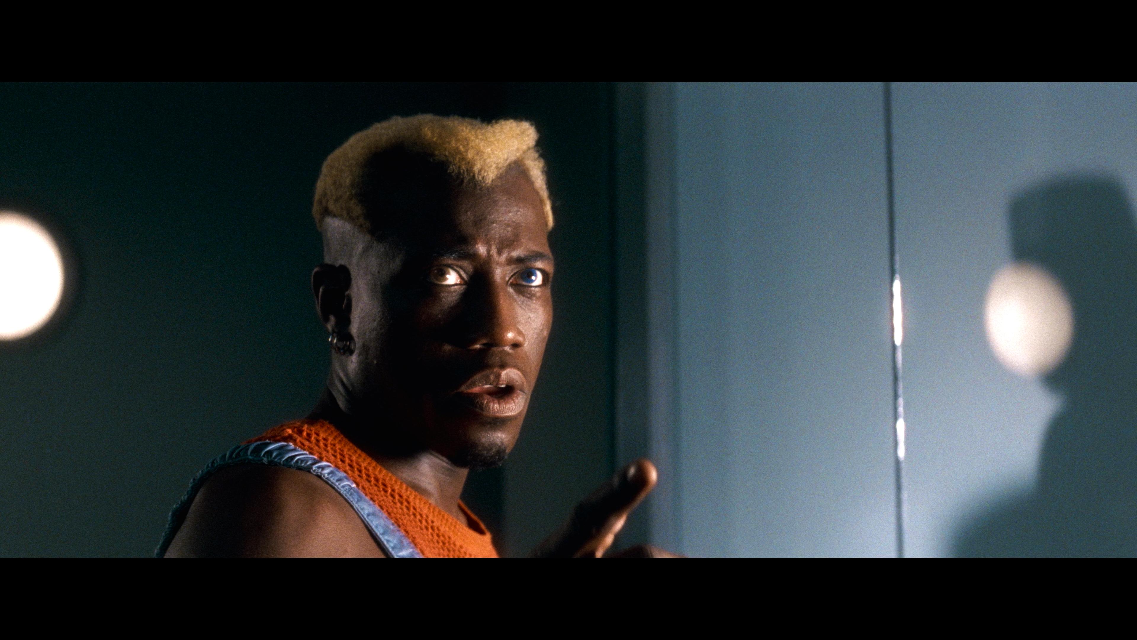 But that’s my only real negative. Fine details in facial features, costumes, and the wild futuristic production design are appreciable. The Dolby Vision grade lets the natural primaries pop nicely while letting whites remain radiantly crisp and clean with deep inky black levels. I also felt like this grading made Simon Phoenix’s heterochromia more noticeable. And given the two versions of the film are on the same disc via seamless branching, the different Taco Bell and Pizza Hut logos are handled well.