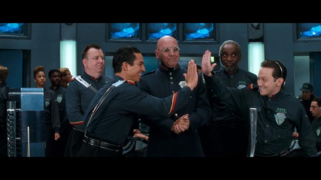 Breaking out of the frosty cryo-prison of 1080p Blu-ray, Demolition Man debuts with a new 2160p Dolby Vision transfer supervised by director Marco Brambilla sourced from a 4K restoration of the original camera negative. Now stepping back to Warner Bros. original Blu-ray, I always thought that one looked pretty darn good. Well detailed, and overall looked pretty good, but it was also a bit… orange. The cast in that transfer all looked like they had taken a run through the spray tan booth before jumping in front of the camera. That was the first big thing I noticed about this new transfer.