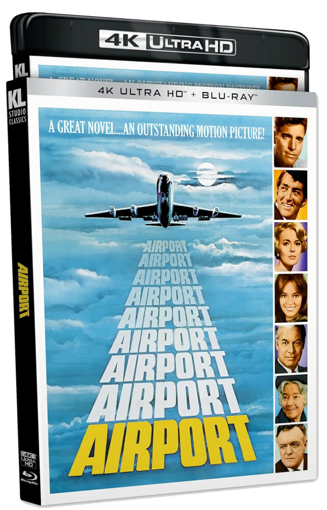 We place our 2160p baggage in the overhead bins as we settle in for Airport on 4K UHD from Kino Lorber Studio Classics. A two-disc 4K + Blu-ray set, the 4K version is pressed on a BD100 disc with a Region A BD50 serving the 1080p. The discs are housed in a standard black two-disc case with identical slipcover artwork.