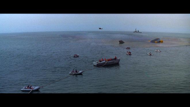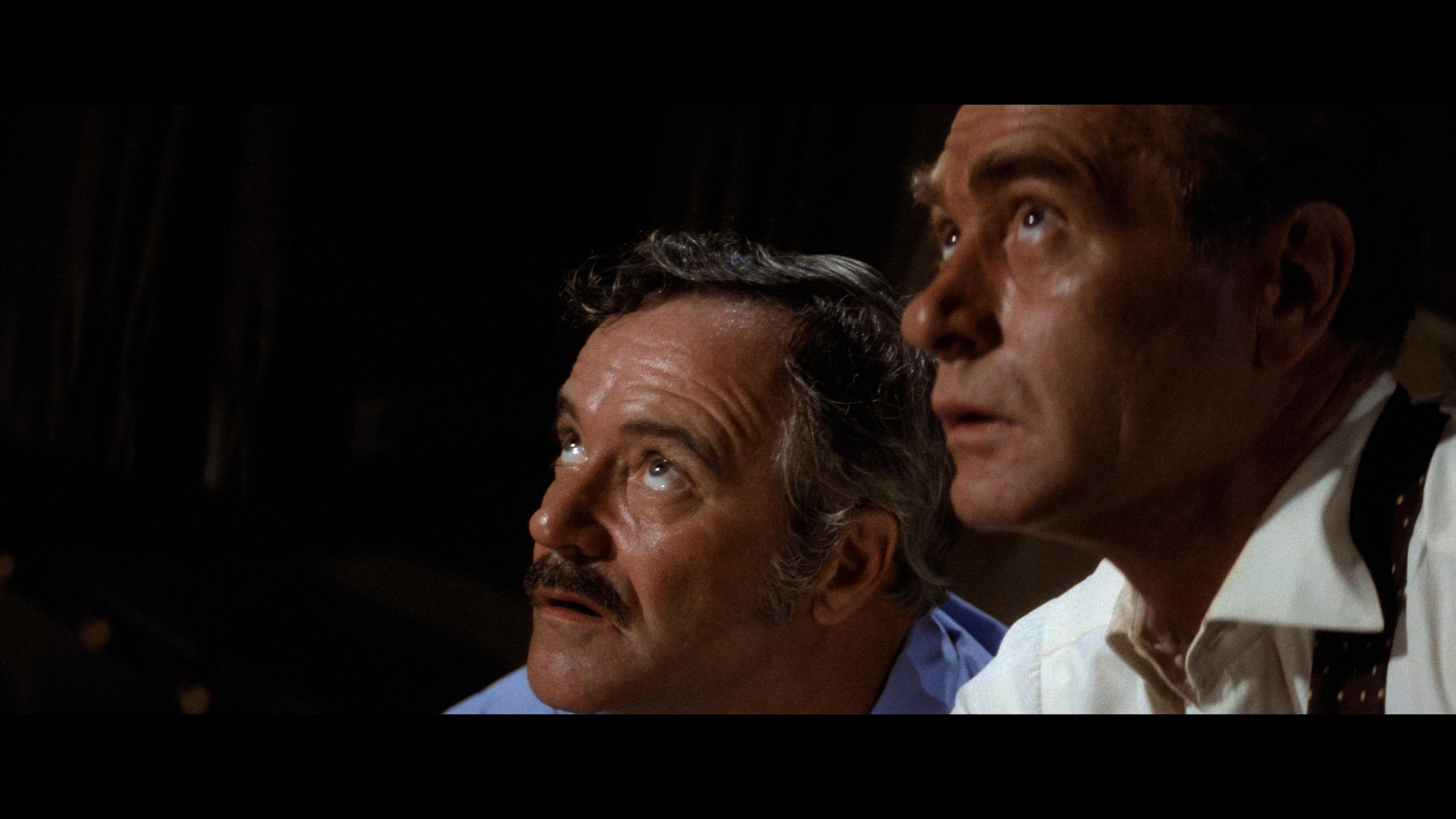 The big franchise high-flying action of Airport ‘77 goes subaqueous in 2160p Dolby Vision. Like its franchise sequel siblings, this transfer is reportedly sourced from a new 4K scan of the original 35mm elements. But unlike the previous two films, this one is only impressive in fits and starts. The opening credits sequence, even when there aren’t any opticals on screen, can look a tad dodgy. Grain can appear a bit smudgy in these moments; similar, but not as severe as something like those episodes of Knight Rider or anything like that. Just off. Once those credits are fully out of the way, things generally improve substantially. Sharpness and detail clarity start to take better shape for facial features and the imagery. While Edith Head would pick up another Oscar nomination for costumes, the art design and set decoration would also justifiably earn a nomination. Facial features, those ornate costumes, the interesting, glitzy interiors of the aircraft, all look strong for a title of this vintage. It’s a notable improvement over the old Blu-ray, which was marred by excessive edge enhancement and blown-out contrast. One slightly iffy issue to report is that the image can appear oddly flat and dimensionless at times. Again, not a consistent issue, it comes and goes and isn't always noticeable. On the plus side, colors offer stronger, more natural primaries, and skin tones are far healthier than the overly pink appearance of that old Blu-ray. Overall, good, an improvement, but not something to pull off the shelf for a demo disc.