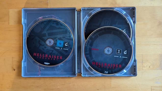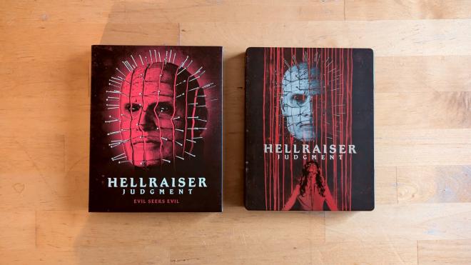 Germany’s Turbine Medien rips the skin off our backs to deliver Hellraiser: Judgment on a three-disc 4K UHD + Blu-ray SteelBook set. The 4K is pressed on a BD66 disc with a Region Free BD50 disc offering the film in 1080p with another Region Free BD50 disc reserved for bonus features. All discs are housed nicely in a stylish SteelBook with slick reflective accents. The SteelBook comes in one of four very slick slipcase options. NOTE: All images are sourced from the included Blu-ray, when we can we'll try to source images from the 4K disc and if possible a video sample.
