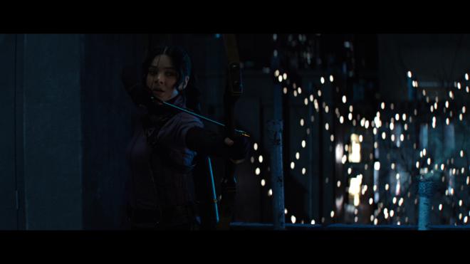 Among the first of the Disney+ series releases to arrive with Dolby Vision HDR on disc and not a streaming exclusive, hats off to the House of Mouse for a genuinely splendid 2160p 2.39:1 transfer for each episode. Similar to previous disc releases, the uptick in bitrate and the lack of streaming compression really lets the visuals of this series pop. From full daylight scenes to a darkened musical theater to the nighttime rooftop battles, the visuals hold up beautifully easily outpacing the streaming experience. Facial features, production design, and costume details are all on display. HDR grading hits just right letting all of the holiday colors pop with plenty of blue, red, and yellow punches. The purple-accented outfits of our two archers are nice accents to all of the dark black suits running around. Skin tones are healthy and human without appearing peached or pinked. One episode to the next, this is a worthy addition to the collection for fans.