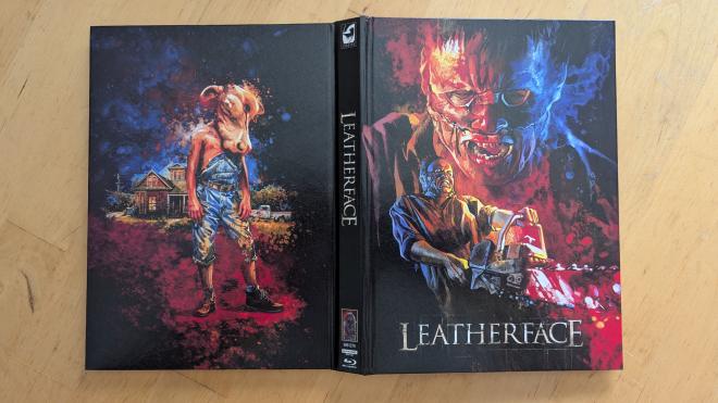 Turbine revisits their 4K release of Leatherface for a new two-disc Mediabook repackage. With the same Region Free BD66 and BD50 discs supporting 4K and 1080p respectively, the discs pick up some snazzy new packaging options. Included within the binding of this Mediabook edition is a 40-page book Once Upon A Time in Texas by Tobia Hohmann which is in part reprinted from the longer 62-page book from Turbine’s Mediabook edition of The Texas Chain Saw Massacre giving a very fun and informative overview of the franchise’s many iterations. It’s in German, but with Google Translate, it’s an easy read.