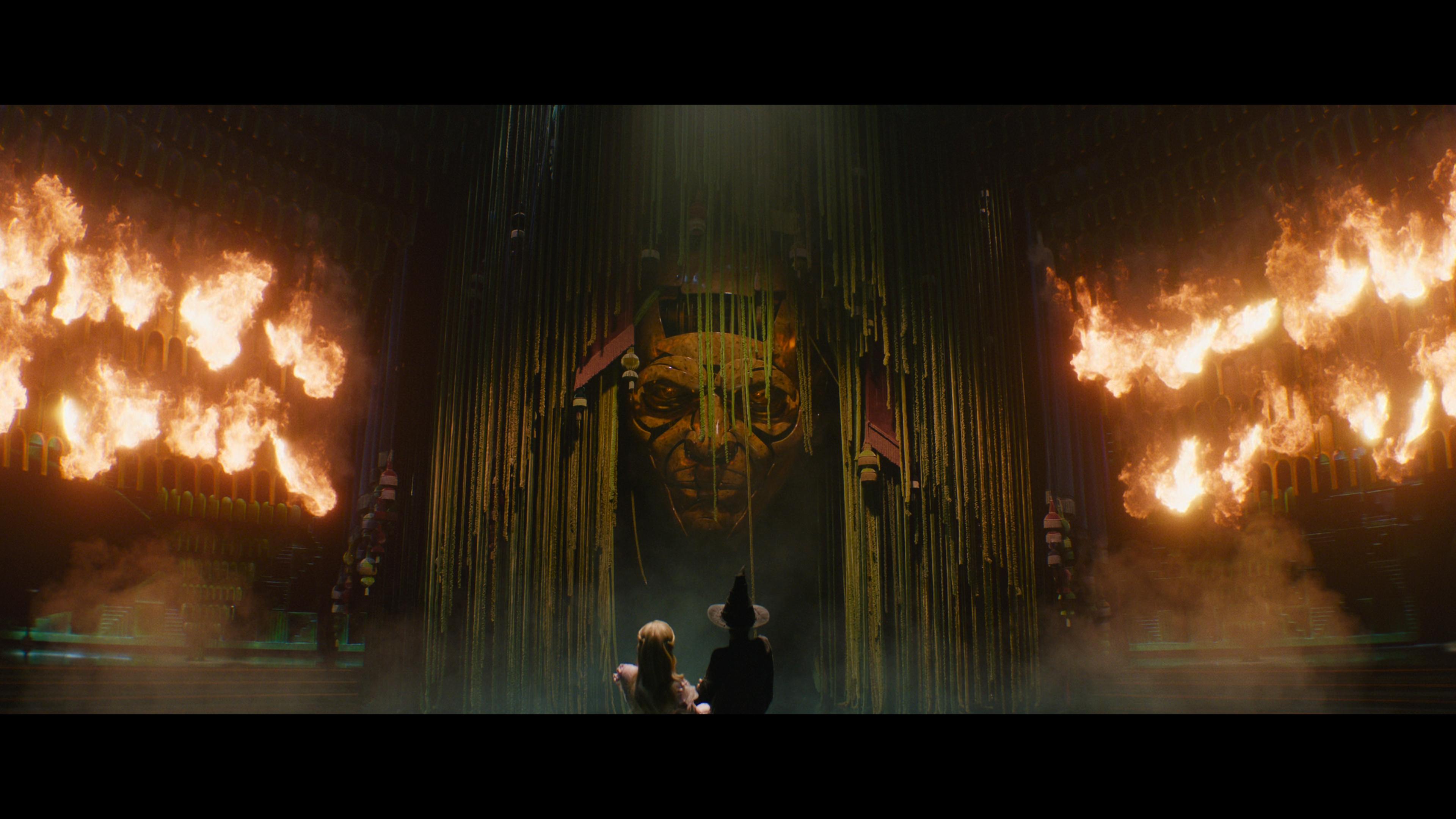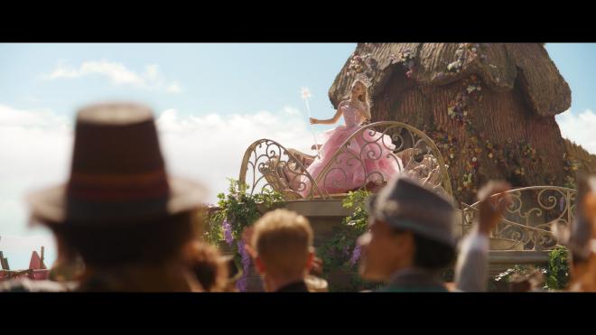 Big sets, loud colors, and amazing costumes, Wicked is practically made to be seen in 4K with an excellent Dolby Vision transfer. I would have rather seen it in 3D given the staging, but that's just me. I did think some of the CGI effects and some of the scenery extensions were a bit obvious and fake-looking, but the majority of the image is delightfully beautiful in 2160p. Facial features, incredible make-up work, and hairstyling, the practical sets get the full experience on disc. Even some of the CGI animal characters like Peter Dinklage’s Dr. Dillamond looked impressive under high-resolution scrutiny. With Dolby Vision HDR, the colors pop beautifully. Reds, Blues, and a certain Yellow brick road are given their due. Even greens shine nicely. Black levels are excellent lending to a terrific sense of depth. Again my only real gripe is that it can be pretty obvious when the practical sets stop and the CGI scenery extensions start. But if you’re paying attention to that kind of thing, you’re not really paying attention to the movie. I imagine most fans out there won’t care about any of those sorts of shortcomings when everything that is up front and in your face is done so well.