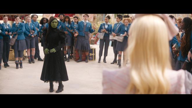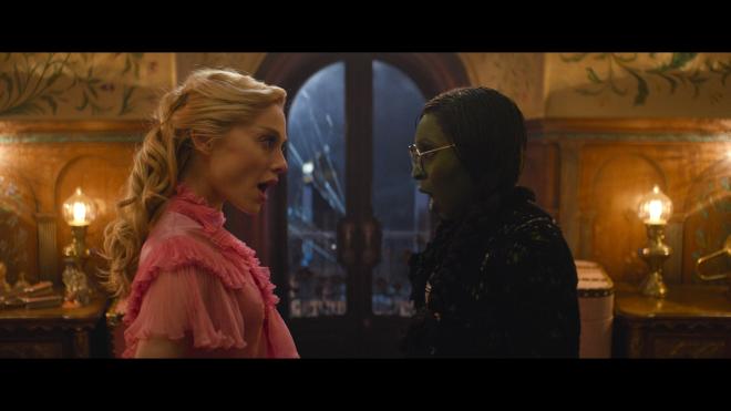 And not to be too surprised, Wicked casts a wonderful spell on Atmos. From the first moments recounting the final moments of the Wicked Witch’s demise and the monkeys taking flight, this is a loud boisterous audio track that really likes to play on a big stage. I guess that’s what Atmos is for, right? Overheads see some modest effect-specific action, namely whenever Elphaba uses her powers, but the whole soundscape is very active and immersive. Dialog is cleanly rendered and prioritized. Key dialog rests in the front/center channels but quiet snickering comments sit nicely in the sides. Musical numbers are a full-swing experience using all of those channels to great effect. LFE is appreciable throughout. Maybe not the heaviest rumble in the subs, but for key impact sounds and a big green train, it’s a nice touch to the sound design.