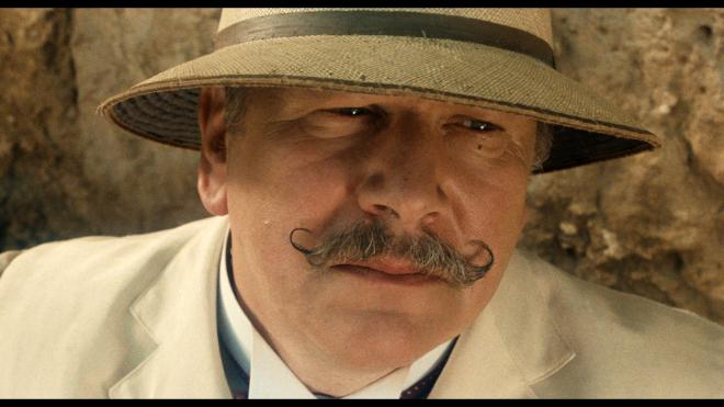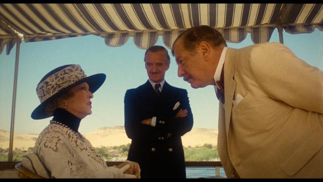 This film, like the rest of the box set, opens with a title card explaining the restoration process, so I don’t need to speculate that this Dolby Vision 1.85:1 transfer is sourced from a new 4K 16-BIT scan by Silver Salt Restoration - UK from the original 35mm negative. And boy, is it beautiful. I was impressed with the 2K restoration StudioCanal delivered and KLSC used for their disc, but I guess they felt they had more work to do! Fine details are so cleanly rendered with a nicely natural cinematic veneer of film grain, and there are moments that look like they were shot yesterday. The first time we see Peter Ustinov’s Poirot in Egypt, the close-up is so clear and lifelike that it was startling to see that big, round head on my screen! Where the previous Blu-ray was a notable upgrade over my vastly inferior older DVDs, this transfer takes all of that work and refines it further. The Dolby Vision grade doesn’t drastically overhaul the color scheme but gives primaries a little more life and heft. Skin tones are naturally human and healthy without looking too peached or pink. Black levels are nice and deep, and with the extra attention for shadowy spaces, that sense of three-dimensional depth is immediately noticeable. A truly lavish travel film, I am still in awe that they got to film at the pyramids and other locations, so it’s a highlight to see these monuments in such detail. I can’t see things getting better for this one.