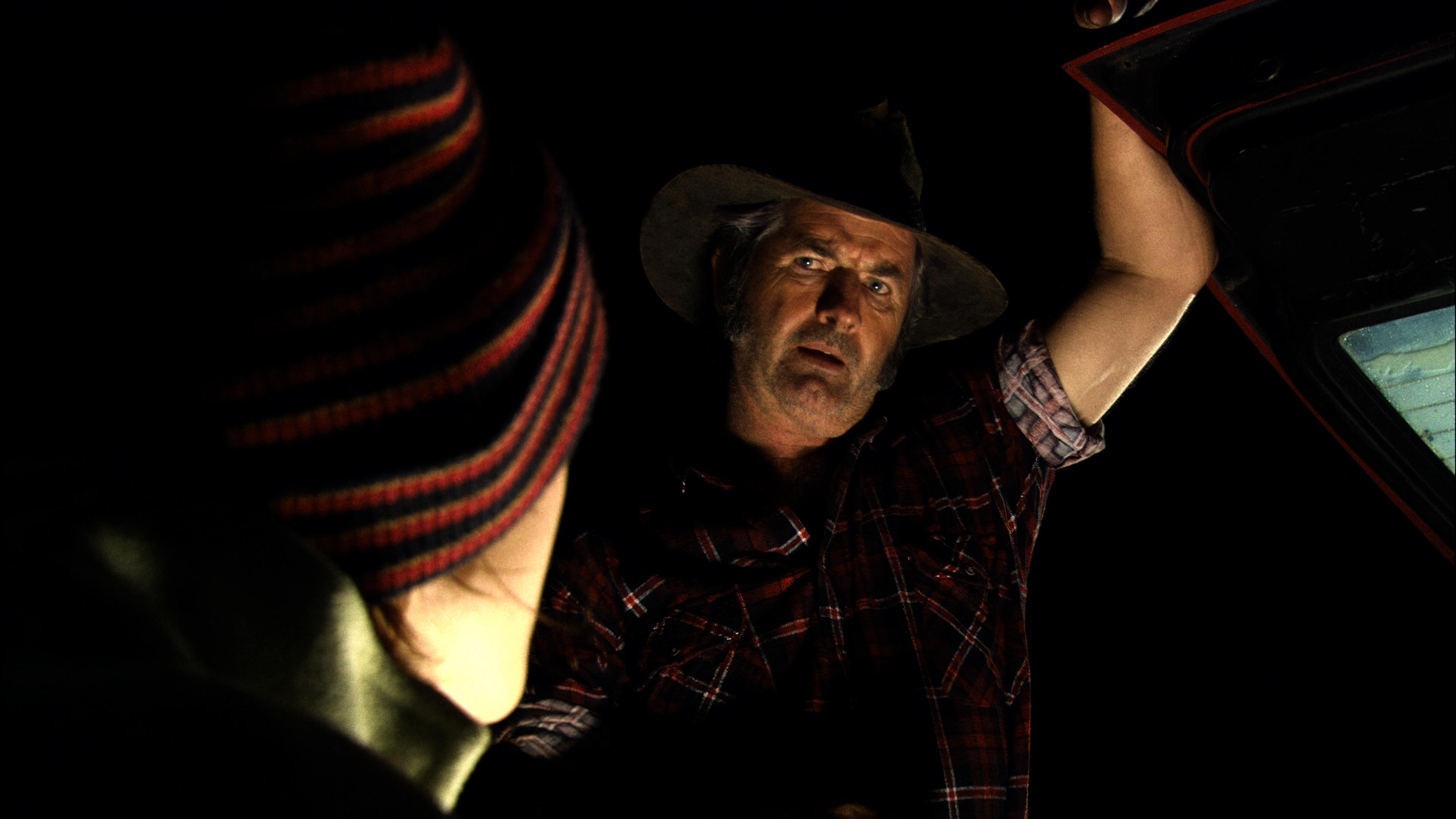 Wolf Creek was predominately shot using the Sony HDW-F900 system and has undergone a director-approved remaster to upgrade the image to 2160p with Dolby Vision HDR, and I have to say the results are damned impressive. While Will Gibson’s cinematography still maintains a look of early-generation digital filmmaking, it comes in looking far more crisp and detailed, with less intrusive video noise or artifacts than previous releases. Think of the visual improvements like upgrading from an iPhone One to a more recent generation. Still looks digital, but a notable improvement in overall clarity and cinematic appeal. The improved sharpness might be a little jarring at first but actually feels natural to the image while reinforcing the sparse desolate vibe of the outback locations. Facial features, the scenic locations, and the gnarly make-up effects are all given their due.