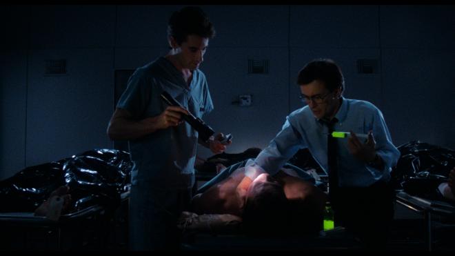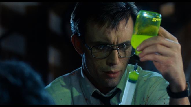 It’s been a long time coming, but we’re finally here for Re-Animator in 4K UltraHD with Dolby Vision HDR (and HDR10) and the results are magnificent. Right from the start, film grain density, image stability, and clarity are immediate notable improvements. I won’t take much away from Arrow Video’s 2017 Blu-ray, it was a fine effort for the time, but there was quite a bit of image wobble, grain could look quite chunky in spots, and there was quite a bit of speckling and scratches in the image. Some very slight speckling and vertical lines remain, but they're nowhere near as obvious or distracting as they once were.