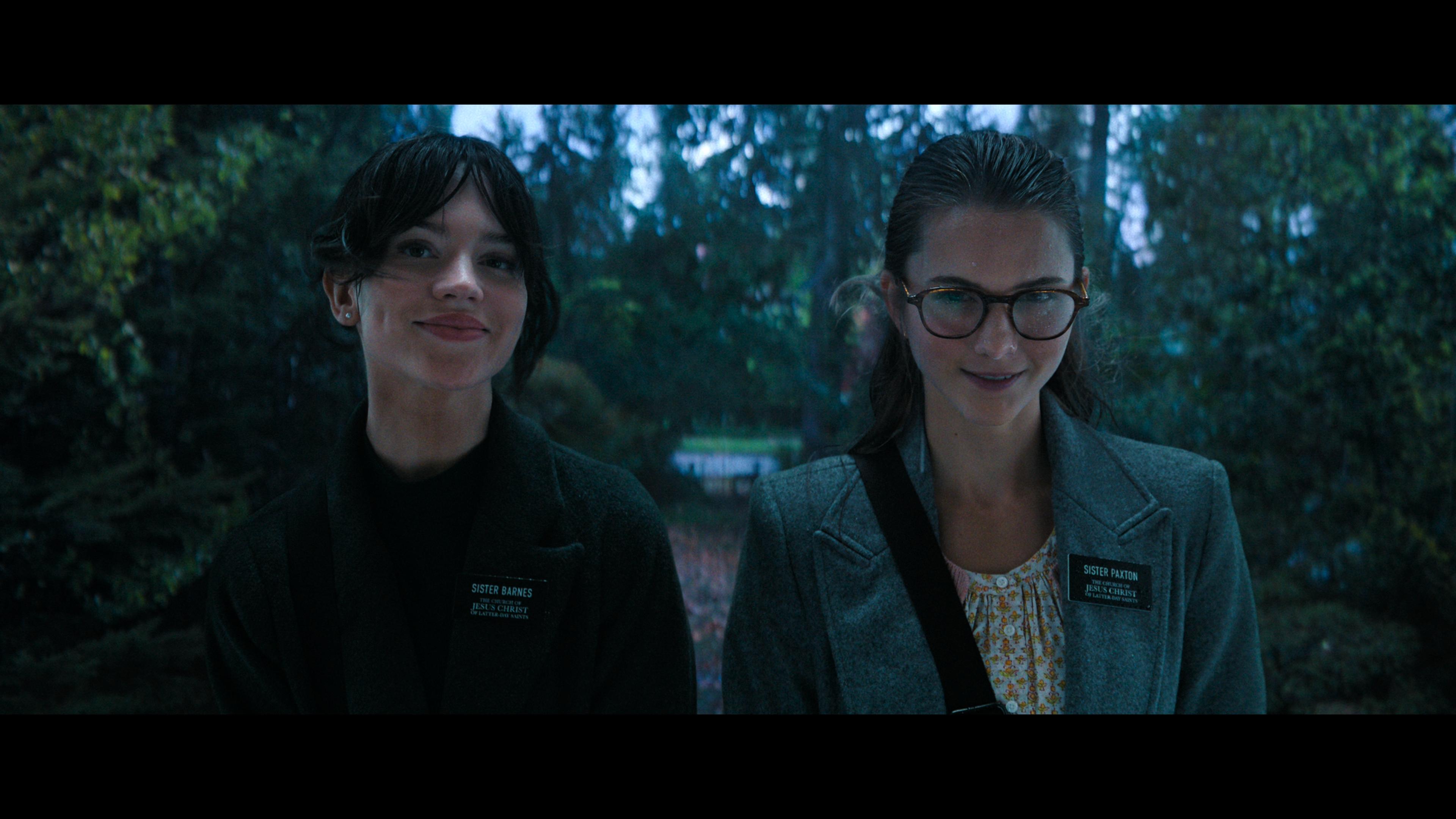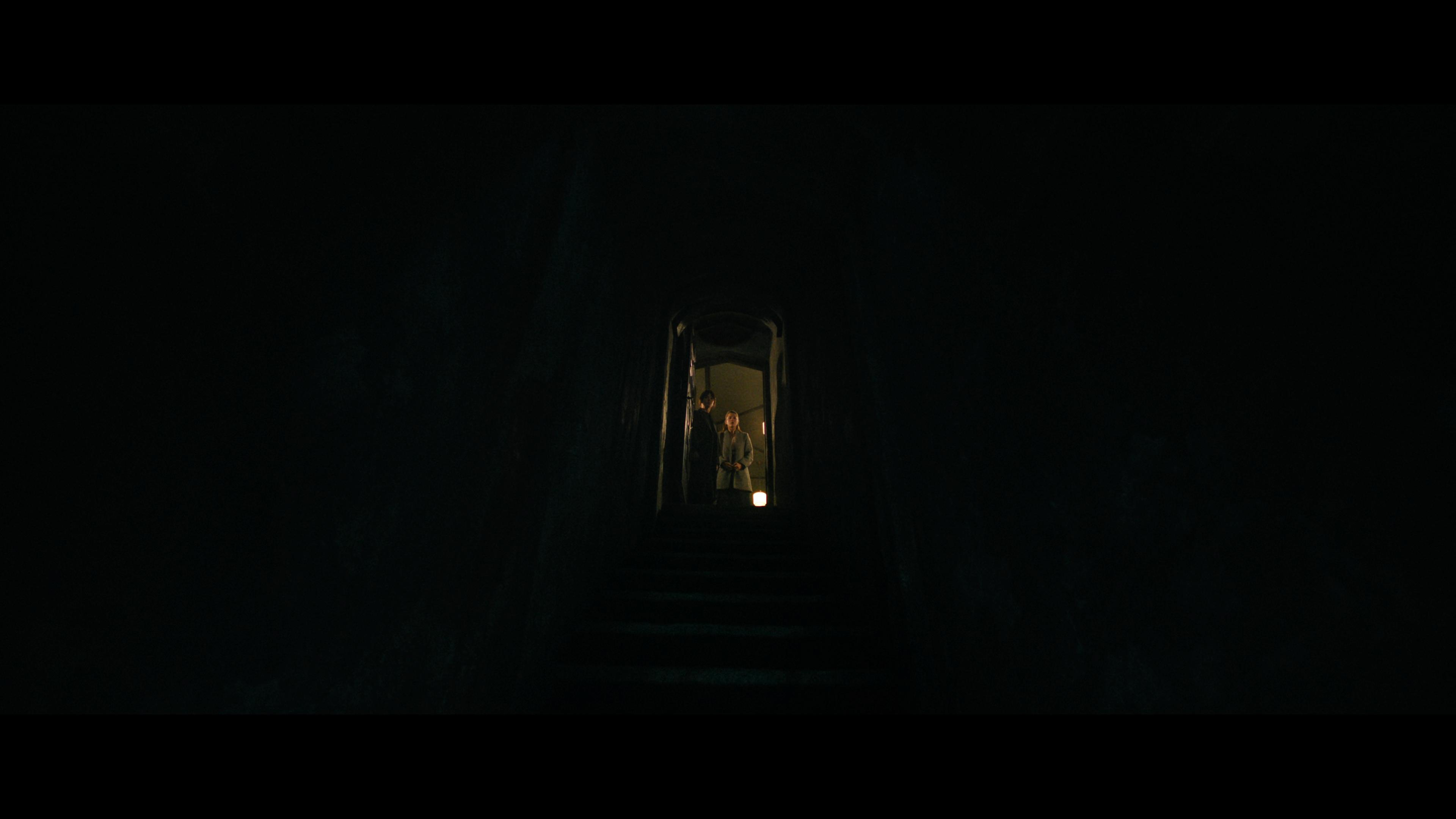 If you’re looking for a 4K UHD Dolby Vision presentation to stress your system’s black levels, well you’re in luck with Heretic! The film isn’t overly colorful or bright. Much of the film uses limited light sources so it plays more with the dark corners of a room and the creepy shadows a candle, lantern, or a soft yellow lightbulb on a timer can cast. All of that is to make the point that this is a very purposefully dark-looking film, but it’s a damned great-looking image. While shot digitally, cinematographer Chung-hoon Chung managed to create a very film-like image similar in vein to what Steve Yedlin was able to produce with Knives Out and Glass Onionas an example. It genuinely looks like it was shot on film. Details, even in the lowest lighting, are crisp and clear which is important because this movie makes you pay attention to the little things in each room. Patterns in Reed’s wallpaper, his maze-like model, clothing, and facial features - are all on display. And because colors are rather muted in relation to lighting, they don’t exactly pop off the screen. But skin tones are healthy and human. Whites are bright and crisp. And again, those deep inky black levels are practically perfect. Even in those dark scenes the sense of image depth and dimension is maintained. So, perhaps not the showiest of presentations, but it’s a good one to stress test your high-end setup for!