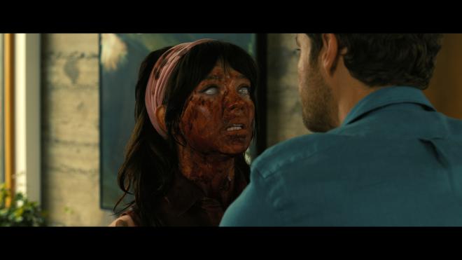 Companion marks its 4K disc debut with a very pleasing 2160p HDR10 transfer. Given the location of a luxurious house set in the woods near a lake, the scenery and background catch a lot of visual attention. The furniture and interior styling offer a nice counterbalance to all of the outdoor scenes, giving us more of that nature versus artificial dichotomy within the story. Facial features, clothing textures, etc., are all on display. The film isn’t riddled with over-the-top CGI effects, so there’s nothing to skew the visual presentation or anything that’d just seem out of place. Most of the film takes place in daylight or well-lit interiors and looks terrific, giving primaries plenty of attention with healthy skin tones. When the story moves into the evening or darker locations, black levels are spot-on with nice shadow gradience, giving the image plenty of natural three-dimensional depth. I’d have been curious what a Dolby Vision grade could have brought to the fold, but as is, this is a lovely transfer that works perfectly for this film.