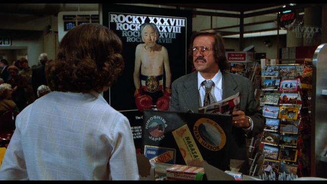 Bottom line, Airplane II: The Sequel isn’t nearly as funny as the first film. That’s a damned tough act to follow. However, there are enough gags and setups here that work well enough to be just as memorable and stand alongside the best bits of the original film. A nurse checking the oil of a patient behind Striker. Sonny Bono’s “life insurance” policy callback to Van Heflin in the original Airport, along with the Rocky XXXVIII poster and the stickers on his briefcase. Every moment of William Shatner is comedy gold. Sure, it’s not original and it’s not as good as the first, but it’s damned funny! Now more than ever, we need good spoofs. Maybe it’s a good time to dust off my old college screenwriting project, Airplane 3: The Remake?