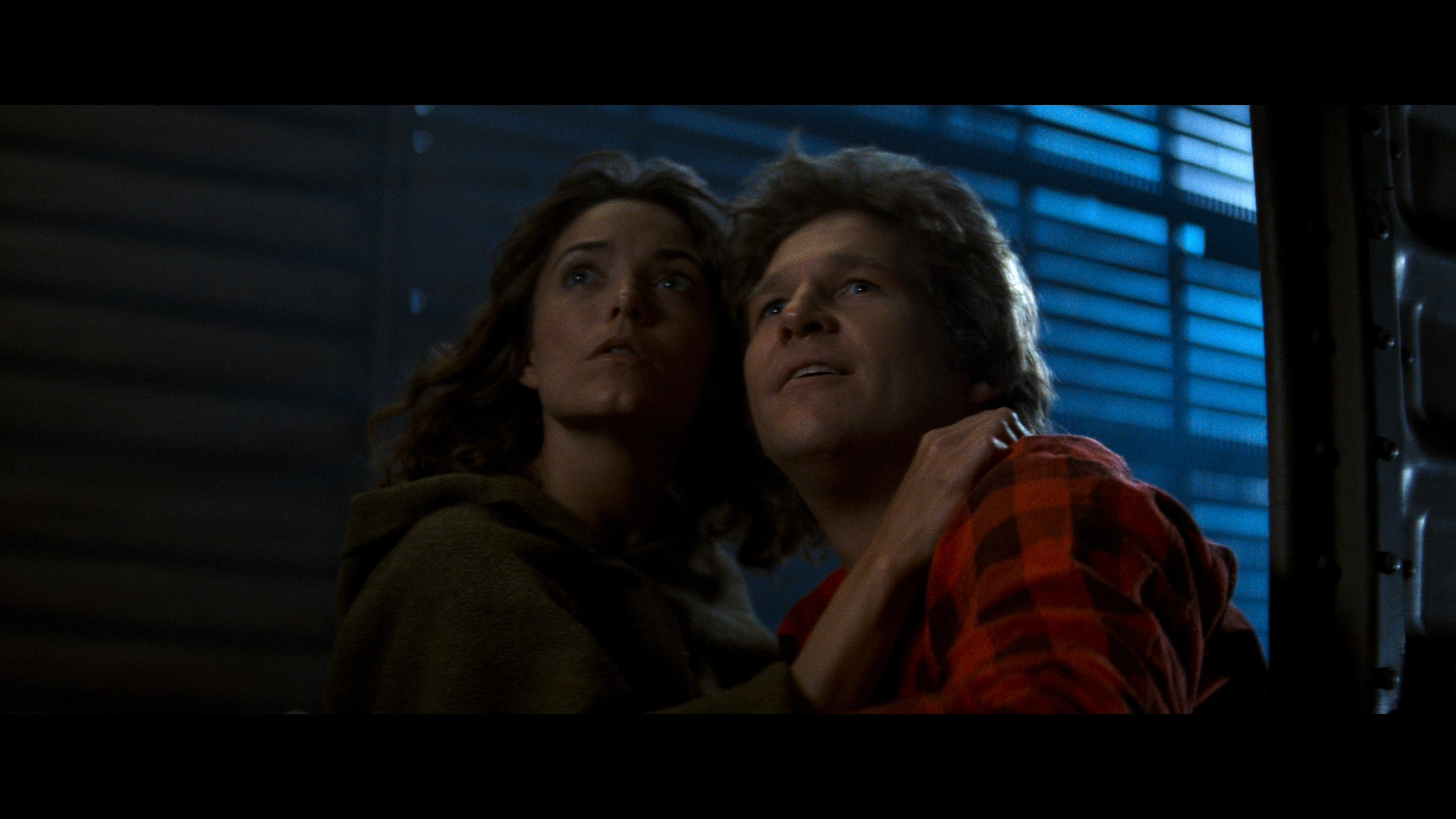 The non-corporeal alien crashes into home theaters with a surprisingly competent and first-class Dolby Atmos soundtrack, presumably from a remaster of the original 70mm 6-track Dolby Stereo mix. Imaging feels broad and spacious with outstanding channel balance, as background activity convincingly and flawlessly pans between the three front channels and into the top height, creating a highly engaging half-dome soundstage. An impressively extensive mid-range displays a great deal of warmth and fidelity while maintaining distinct clarity and definition into the higher frequencies. Dialogue reproduction is precise and well-prioritized at all times, even amid the loudest segments. Rear activity is marvelously busy with excellent directionality as various atmospheric effects smoothly move from one side of the room to the other and across the overheads, from the sounds of the wildlife and traffic to the swarm of helicopters, generating an immersive hemispheric soundfield. A shockingly robust and potent low-end adds an unexpected weight and commanding sense of presence to the action, occasionally rumbling the walls and couch during several scenes.