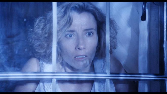 For this audio outing, we’ve got a DTS-HD MA 5.1 and a DTS-HD MA 2.0 track. Without the disc on hand, I can’t compare this DTS-HD MA 5.1 track to the Dolby TrueHD 5.1 mix on the Paramount Blu-ray. To that, I have to give credit where due; it’s a hell of a track. The film’s soundscape is a fun blend of the two eras, giving the 1940s and the early 1990s distinct feels and atmospheres. The film is certainly dialog-heavy, but there’s never any issue with clarity. And while we may have lengthy chatty exchanges in antique shops or even in a grocery store meat freezer for exposition, there’s always something happening in the background to keep the surround channels engaged, even if only subtly. Patrick Doyle was under instructions to deliver a Bernard Herman Hitchcockian-style score, and I’d say he did great work. It’s certainly dynamic, and it can be quite overpowering, but given the scenes where that happens, it’s by design. I didn’t spend a whole lot of time with the 2.0 track; it works for what it offers, but I wasn’t wowed. The 5.1 was more present and impactful.