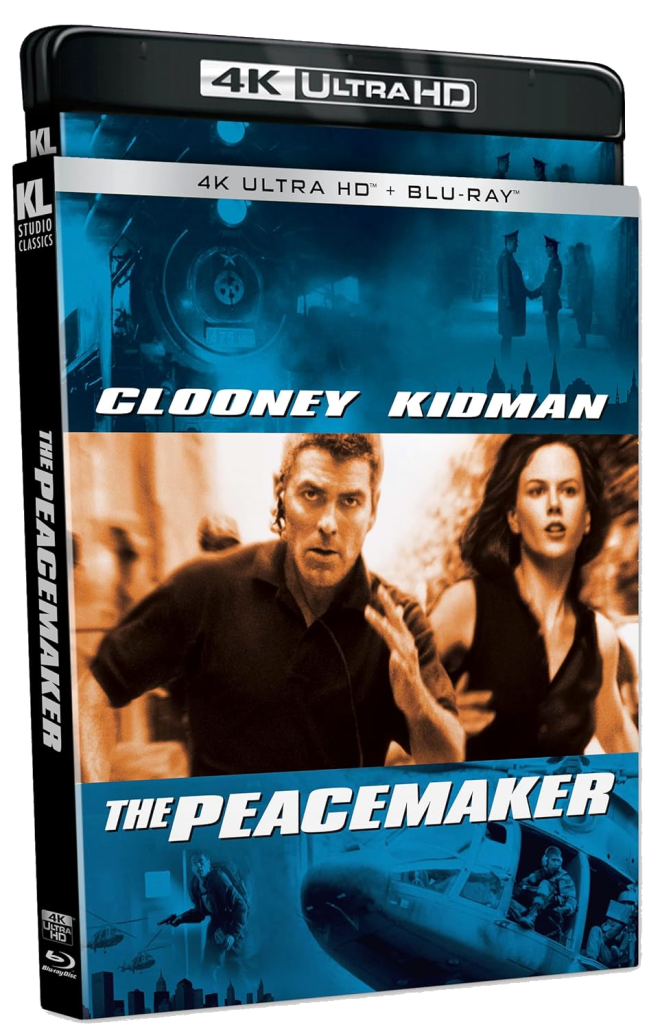 The Peacemaker comes to 4K UHD Blu-ray from Kino Lorber studio classics in a no-nonsense release with stellar A/V stats and some neat features for this by-the-numbers late-90s thriller. While the movie itself feels like a plot on autopilot, it's comforting junk food, and KLSC's release will give your home theater a workout. Recommended.