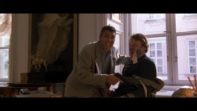 I’ve been reviewing a lot of movies lately that feature a 5.1 surround track, which is more of an upmix of the film’s original stereo track. Sound effects, music, atmospherics, etc., will be matrixed into the rear of the soundstage. So it was a nice change of pace to watch something newer (well, newish), with a genuine surround sound mix designed specifically for the movie. The Peacemaker’s sound design is awesome. Encoded in lossless DTS-HD MA, surround sound activity through the satellite speakers is at a near-constant level, and LFEs are almost just as frequent. A helicopter blasting a .50 caliber machine gun will make your entire sound system come alive! Helicopter blades whooshing through the front speaker, echoing gunfire pinging the rear speakers, the subwoofer pulsating throughout. However, this being a talky feature, all things considered—it’s not nonstop thrills, it’s about the thrill of the chase and the investigation—dialogue quality is favored throughout.