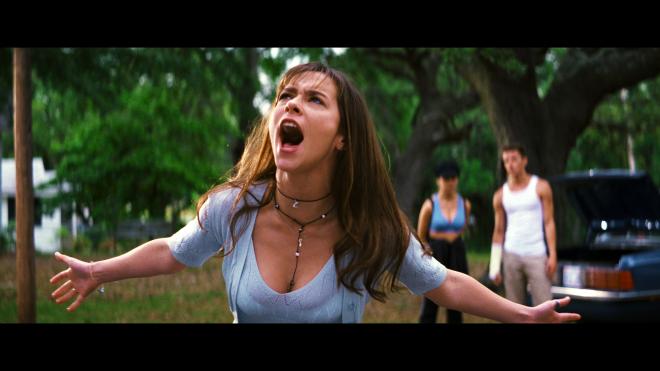 Right from the opening moments with the Type O Negative song and sounds of the coast, imaging feels expansive with lots of background activity and a sharply detailed mid-range exhibiting superb clarity and clean differentiation between the softest and loudest segments without the slightest hint of distortion. While keeping much of the action within the front soundstage, the object-based remix also displays superb channel separation and movement across the fronts with marvelous off-screen effects while maintaining precise, well-prioritized vocals in the center. Several moments discretely bleed into the heights, creating a highly engaging half-dome effect. The low-end could be stronger and more demanding, but bass is nonetheless palpable, adding a hefty, weighty presence to the action and music.