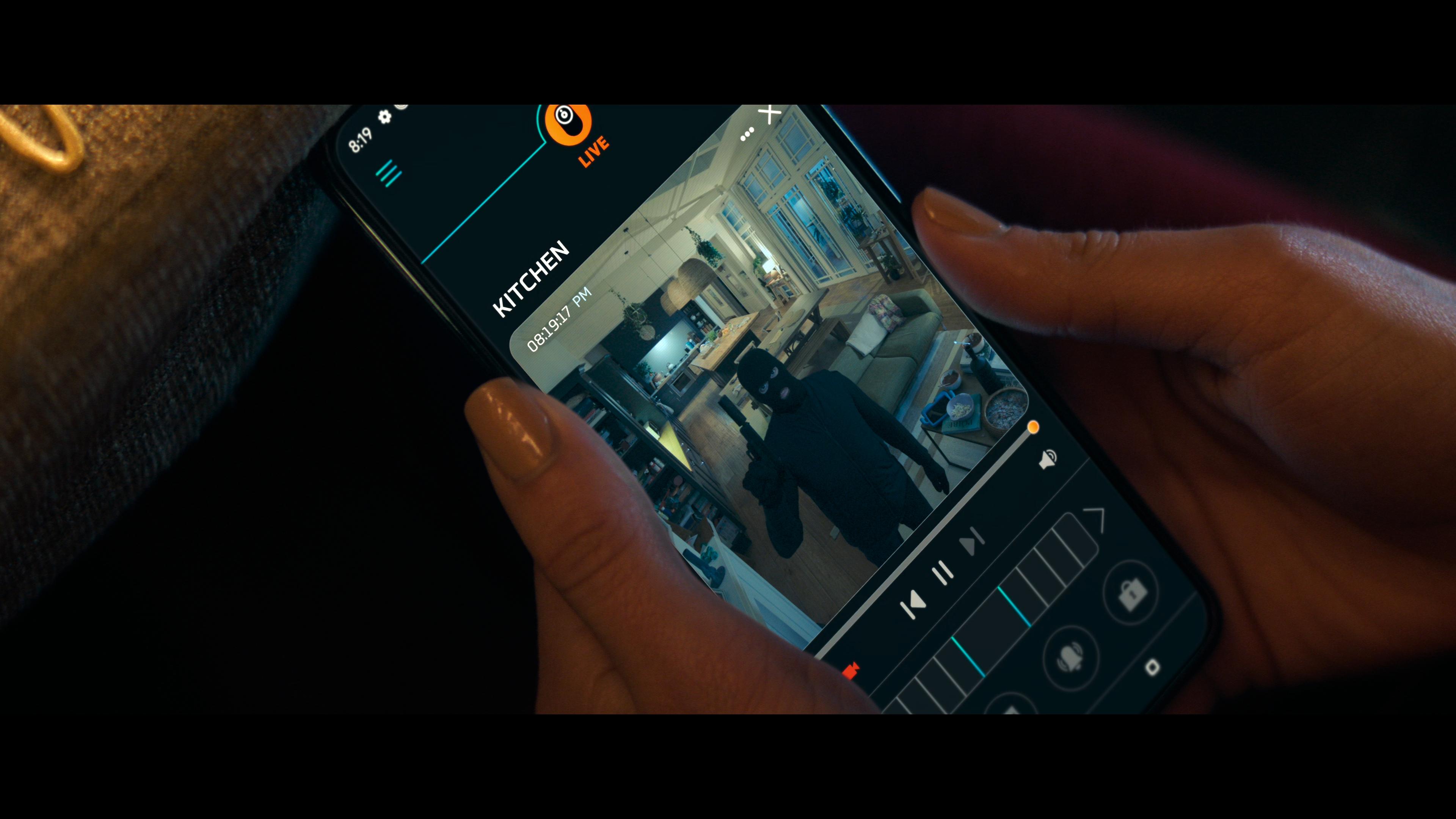 Our film focuses on Meghann Fahy as abuse survivor therapist Violet Gates. A survivor of her own abusive marriage, she’s finally ready to get back out there and start dating and professional photographer Henry (Brandon Skelnar) seems like the perfect gentleman for the occasion. Dressed to the nines, she arrives at one of Chicago’s swankiest highrise restaurants. But then the drop messages start dinging her phone. At first, it’s just bizarre memes, but then they become personal… and deadly. As someone in the restaurant is sending Violet the messages, a masked man stalks her home ready to kill her sister and her young son unless she does everything she’s told to do.