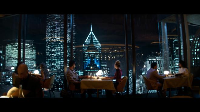 Where this film pulls some weight is in the sound design. I was really impressed at how well the Atmos carried the mix. We get a lot of side and rear channel activity, but it’s subtle sort like how you would normally occasionally hear pieces of someone else’s conversation if you were at a restaurant. Little clinks of glasses and cutlery kick in the same way. So it's not always aggressive but it feels natural and real to the moment. A lot of the mix is a Front/Center affair, but heights get some nice atmospheric attention and really pick up in the final act. Throughout, the dialog is clean and clear without any issues there. The Bear McCreary score is a nice moody accompaniment to the film and provides a lot of the LFE rumble through most of the film. All around a fine mix, not a showstopper, but it works for this flick.