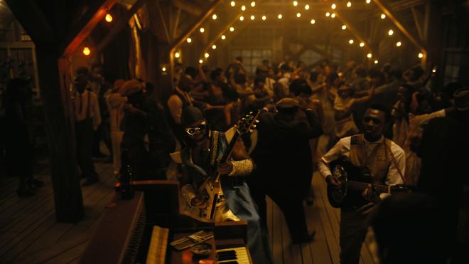 On the audio front, we have an equally impressive Dolby Atmos mix, which shouldn’t be all that shocking, really. I mean, after that theatrical run, did we expect it to sound terrible on disc? Dialog, screams, car engines, the echos of a church, a raging inferno, and some damn good music occupy this wall-to-wall mix. A lot of the appreciation for this Atmos track is in its subtleties. Simple conversations aren’t simple dialog exchanges. I loved Delroy Lindo’s moment telling his story as a Blues player and the tragedy of his partner’s lynching. As the story unfolds, there are these subtle sounds of partying and revelry peppered through the channels, just soft enough to be audible but not loud enough to dominate or distract. Throughout the film, there are moments like that where the subtle pieces of the mix get a moment to stand out. But when the big music scenes and the action/horror come in, the full spread hits the soundscape. Height channels get plenty of distinct uses that is purposeful. It’s not just noise coming out of the height channels to have noise. LFE is also impactful; all of the bass of the music and the hard hits and stomping feet give extra weight and attention to the action on screen and rattles your floors.