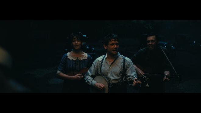 Shot on 65mm and partially with IMAX cameras, Sinners is a showcase for the 4K format. Presented in 2160p Dolby Vision, the film exploits the shifting aspect ratio to perfection. Sometimes with sudden jumps to full 1.78:1, other times the transition from 2.75:1 is a gradual, stylish expansion. Regardless of aspect ratio, it’s a beauty. Details are sharp and crisp, allowing us to fully appreciate facial features, the practical makeup FX, the impressive production design, and all of the amazing period-speciffic costumes this production bought off one of the abandoned Blade reboot projects from Marvel (it’s wild that the Blade reboot even got that far that costumes were made and ready for extras!). Production design also deserves an extra shout-out.