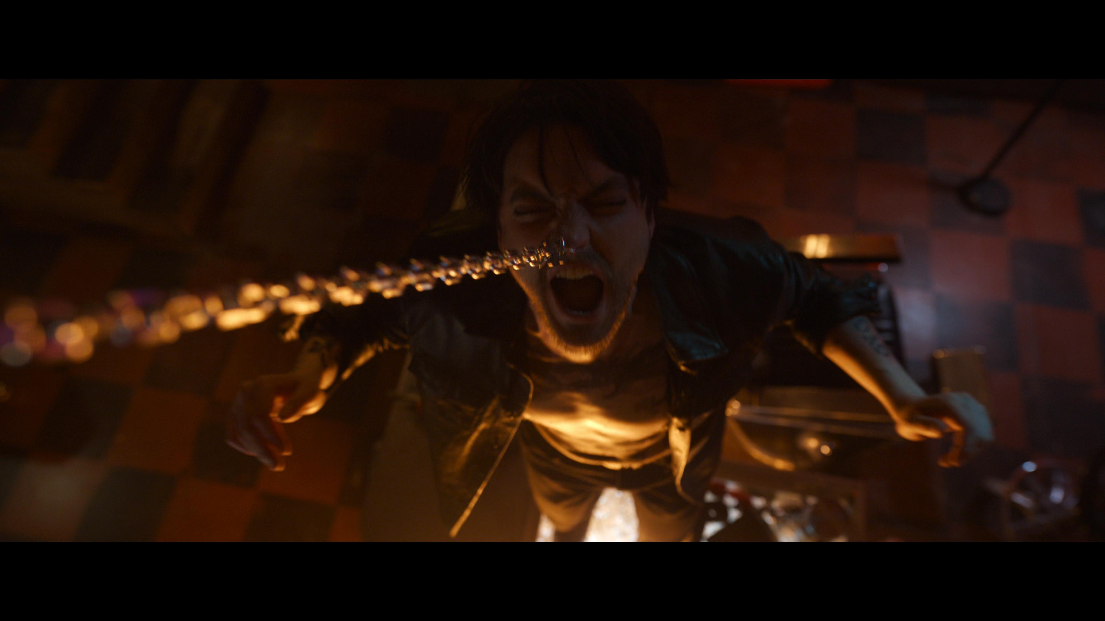 On the audio front, we have a demo-worthy Atmos mix to rock away with. What I loved about this mix is that it’s not just one element or one action moment that makes it so effective. All of the audio elements, score, and FX are in perfect concert with one another to give this fully immersive soundscape to enjoy. You have subtleties in the background and surrounds to give a sense of space, but then the height channels kick in for a slick object-specific sound effect like a piece of a glass chandelier or a chain clinking near a fan blade in a tattoo parlor. Really dynamite mixing. But a great Atmos mix wouldn’t be much without that rumbling LFE, and boy howdy, there’s plenty of impact to rattle your subs! And usually every impact is followed with a wonderfully squishy splashy surround effect. Completing the auditory picture is a great moody score from Tim Wynn with clean and clear dialog throughout.