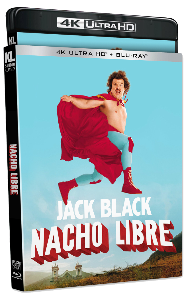 Nacho Libre enters the 4K ring and dominates as a two-disc release from Kino Lorber Studio Classics. This set includes one Triple-Layered BD100 Disc, which includes the 4k scan of the film as well as an audio commentary. This release also includes a Region A BD50 Blu-ray Disc with an HD master of the film as well as the special features. The discs are housed in a black 4K case and include a slipcover featuring the theatrical poster as cover art.